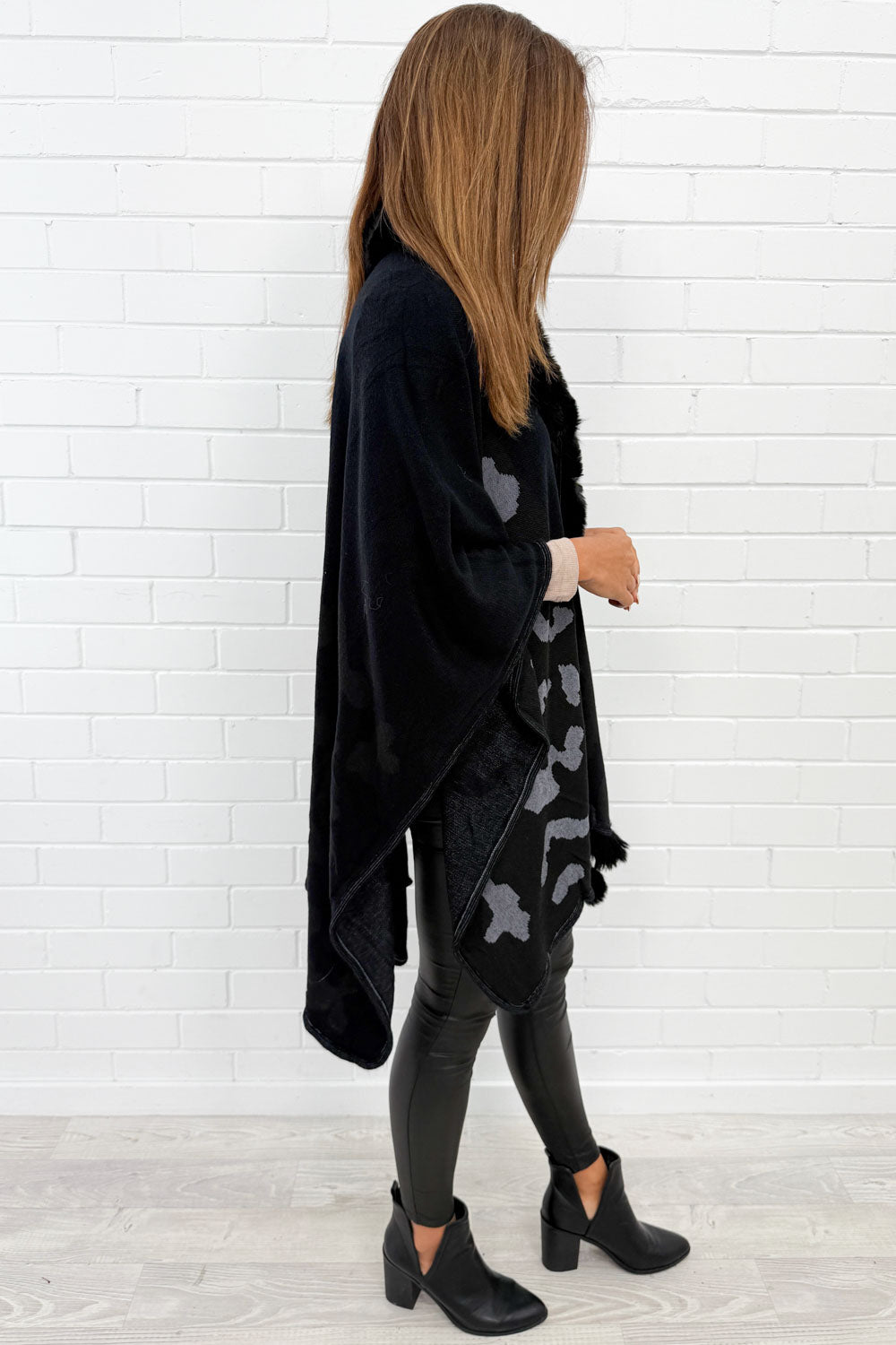 We love this poncho – it’s leopard print, but a really subtle leopard print. Warm and cosy and just so good.