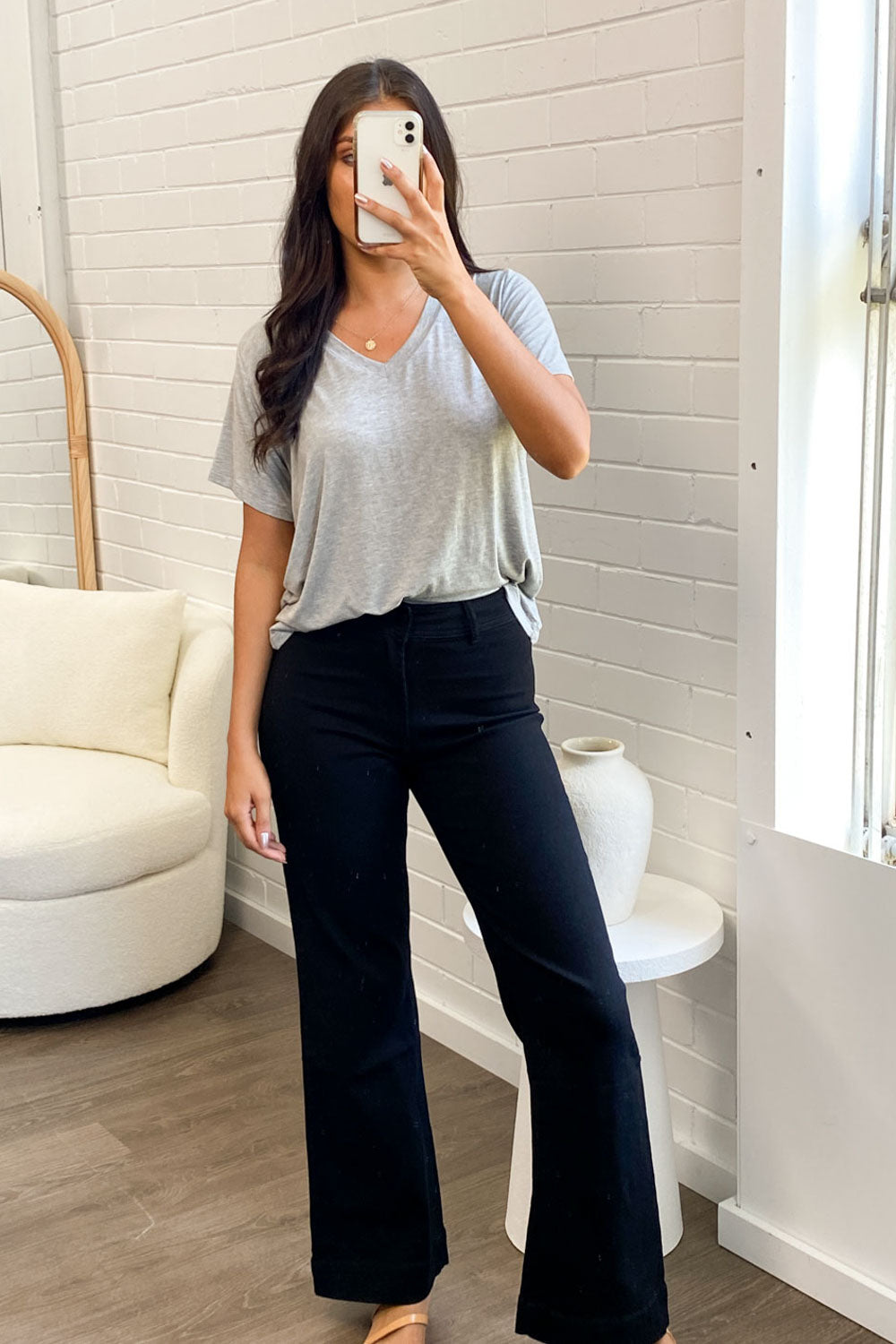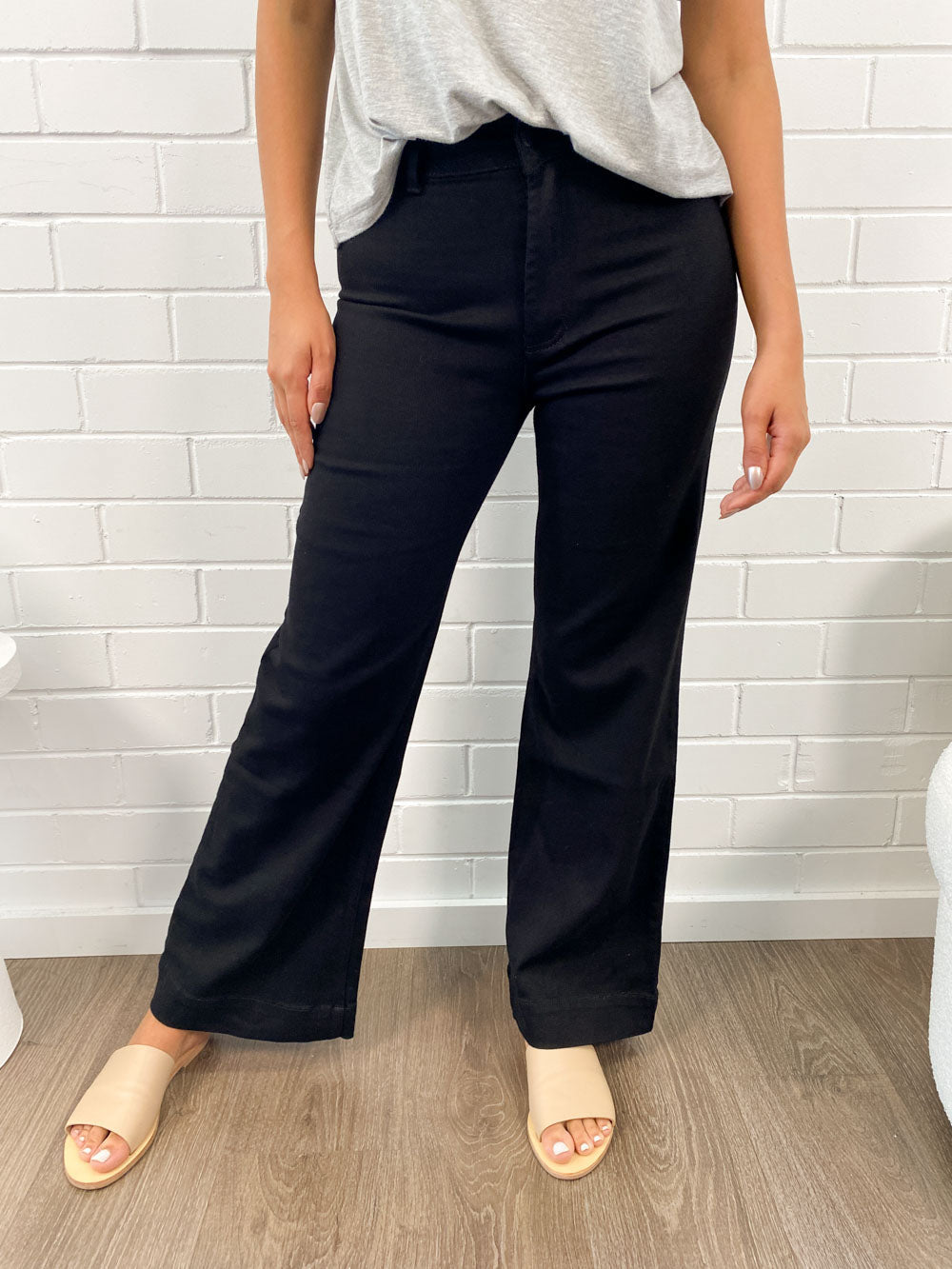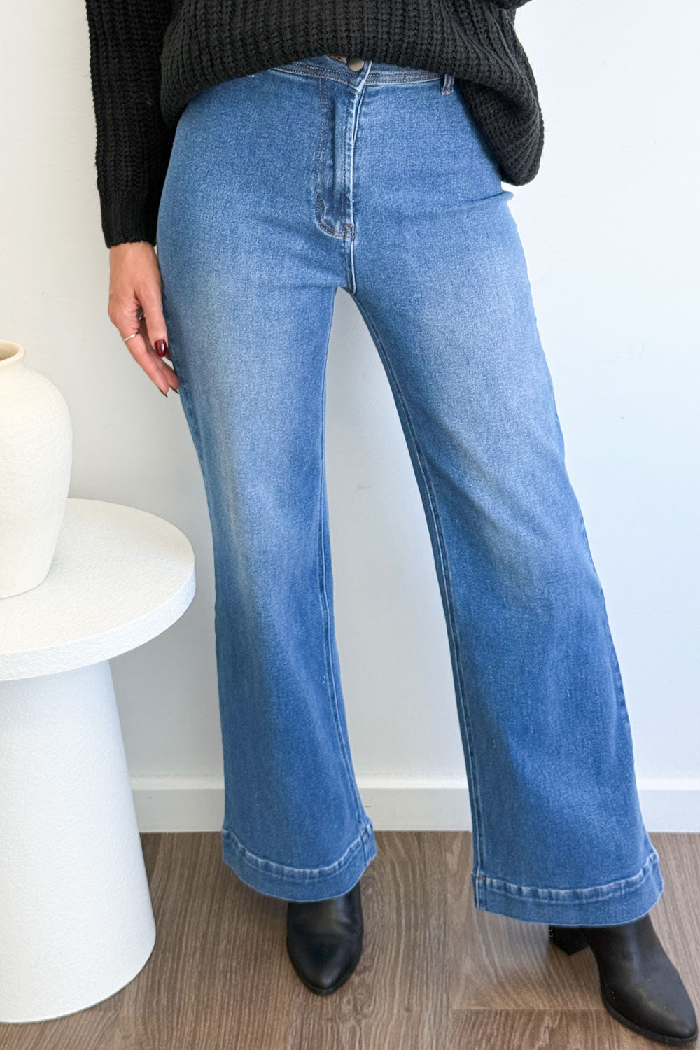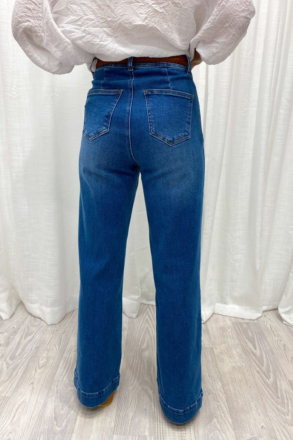 Like our fabulous Joni Jeans, but without the frayed bottom and no pocket on the front - they still have pockets at the back though. Super stretchy and so freaking comfy, the shape is amazing and they flatter and elongate the legs like you wouldn't believe. The perfect wide leg jeans, which are again a classic which you'll love for seasons and seasons to come.