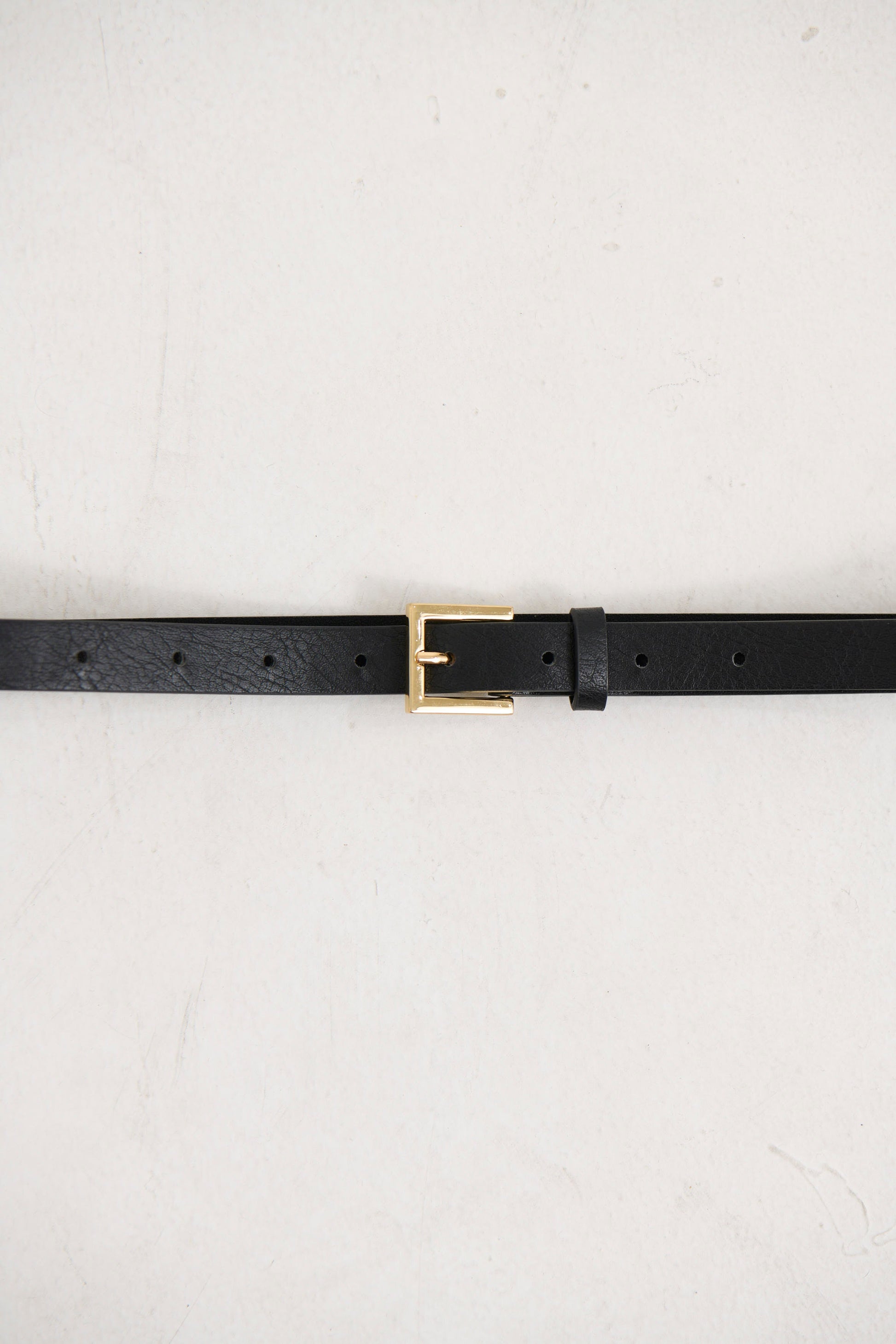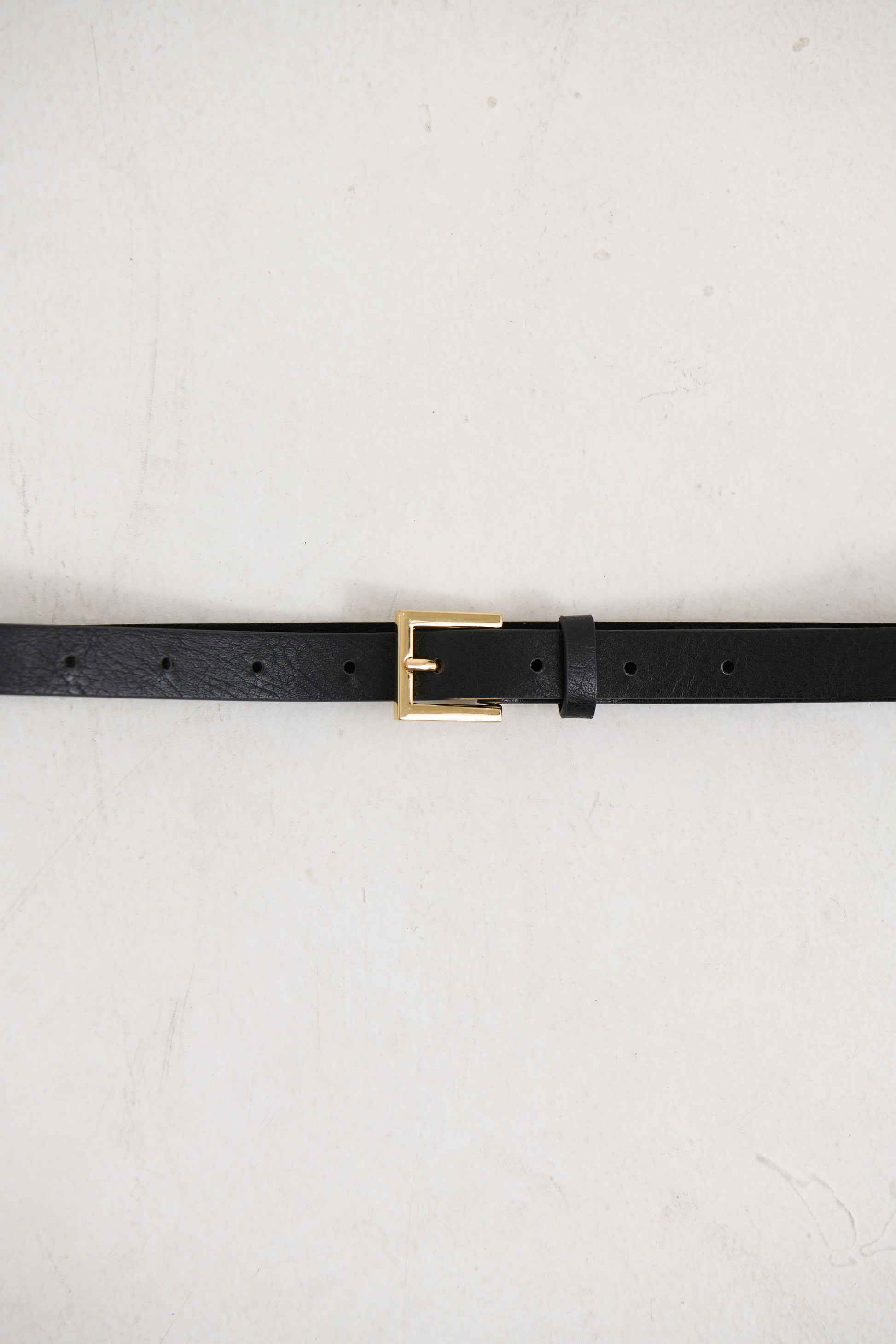 Our Angelique Belt, features a sleek black leather strap paired with a distinctive Rectangle-shaped gold buckle, adding a modern and stylish touch to casual outfits.