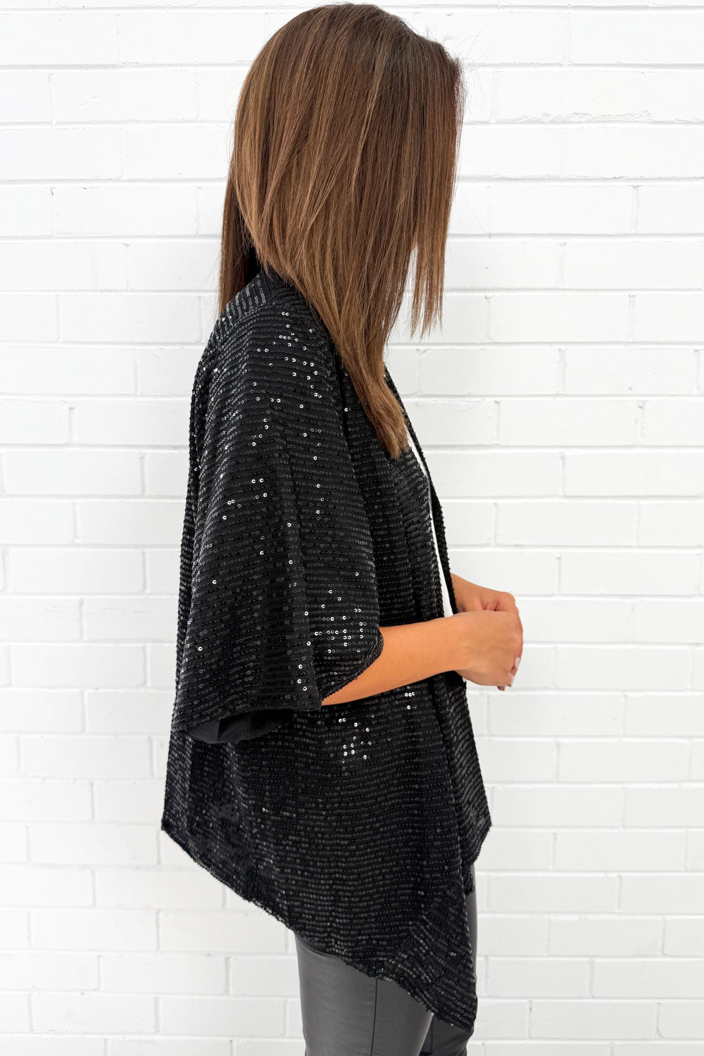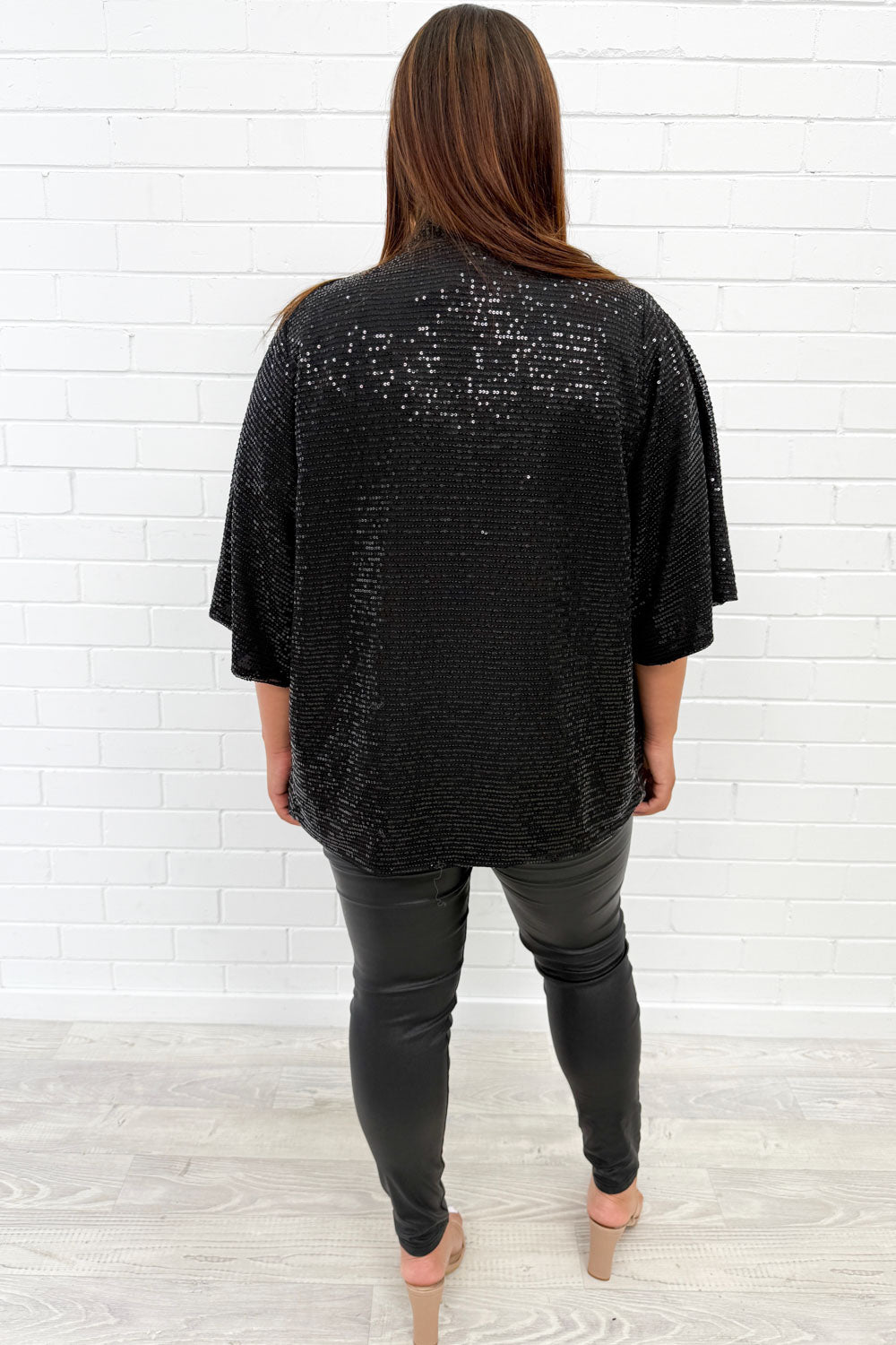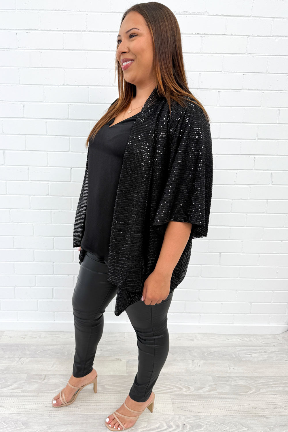 A lovely throw on in a pretty and not scratchy sequin, something to keep for ever more. The length is nice, the sleeves are pretty, and it works on all shapes and sizes.