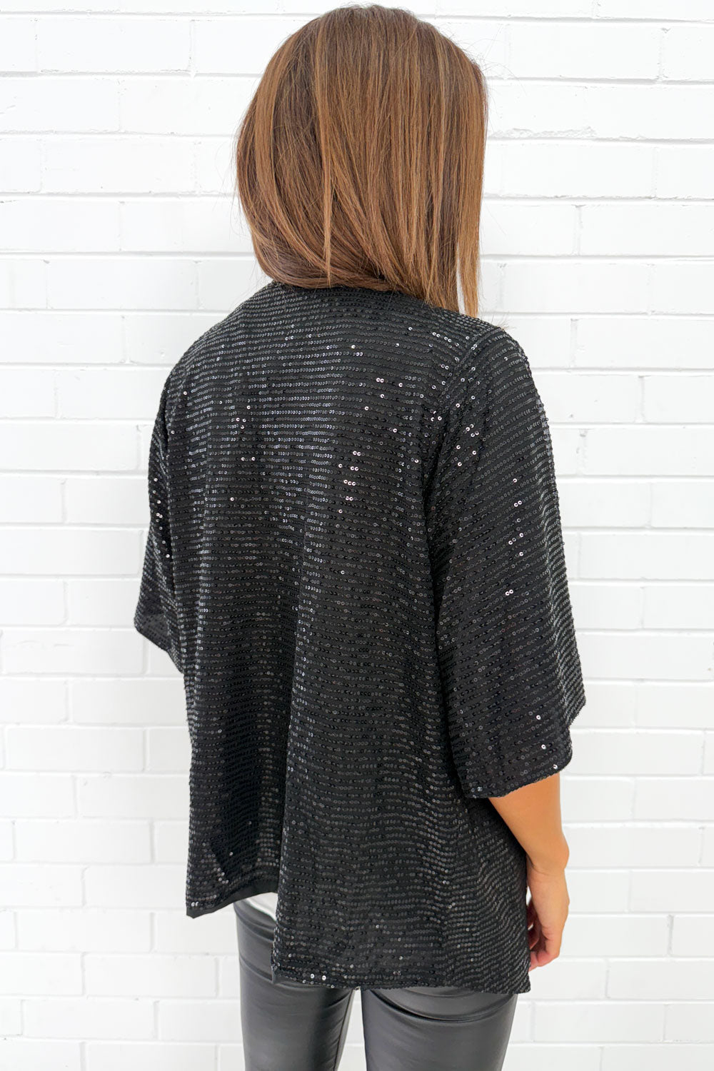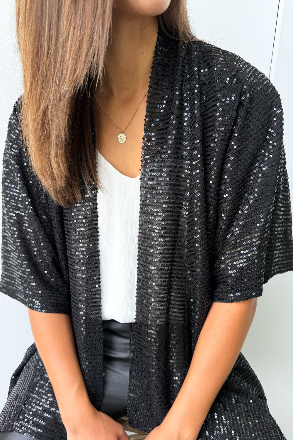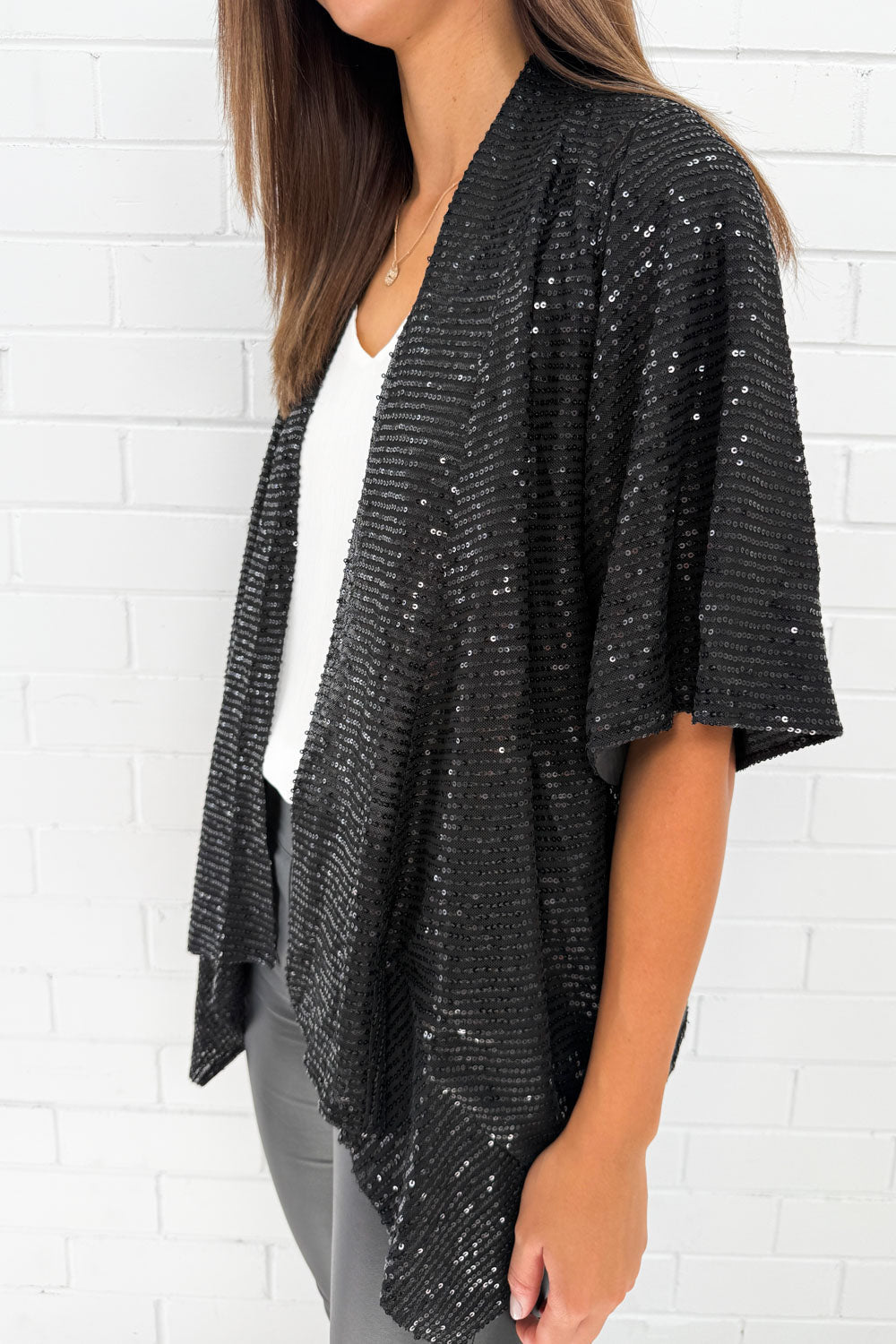 A lovely throw on in a pretty and not scratchy sequin, something to keep for ever more. The length is nice, the sleeves are pretty, and it works on all shapes and sizes.