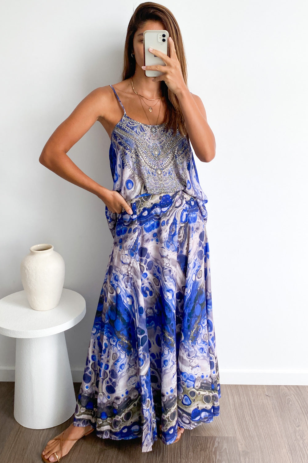Pretty and simple and easy and a lovely shape. Adjustable straps, loose enough to eat in it, and just pretty. And it has a matching skirt if you like sets, though it also looks gorgeous when worn separately.