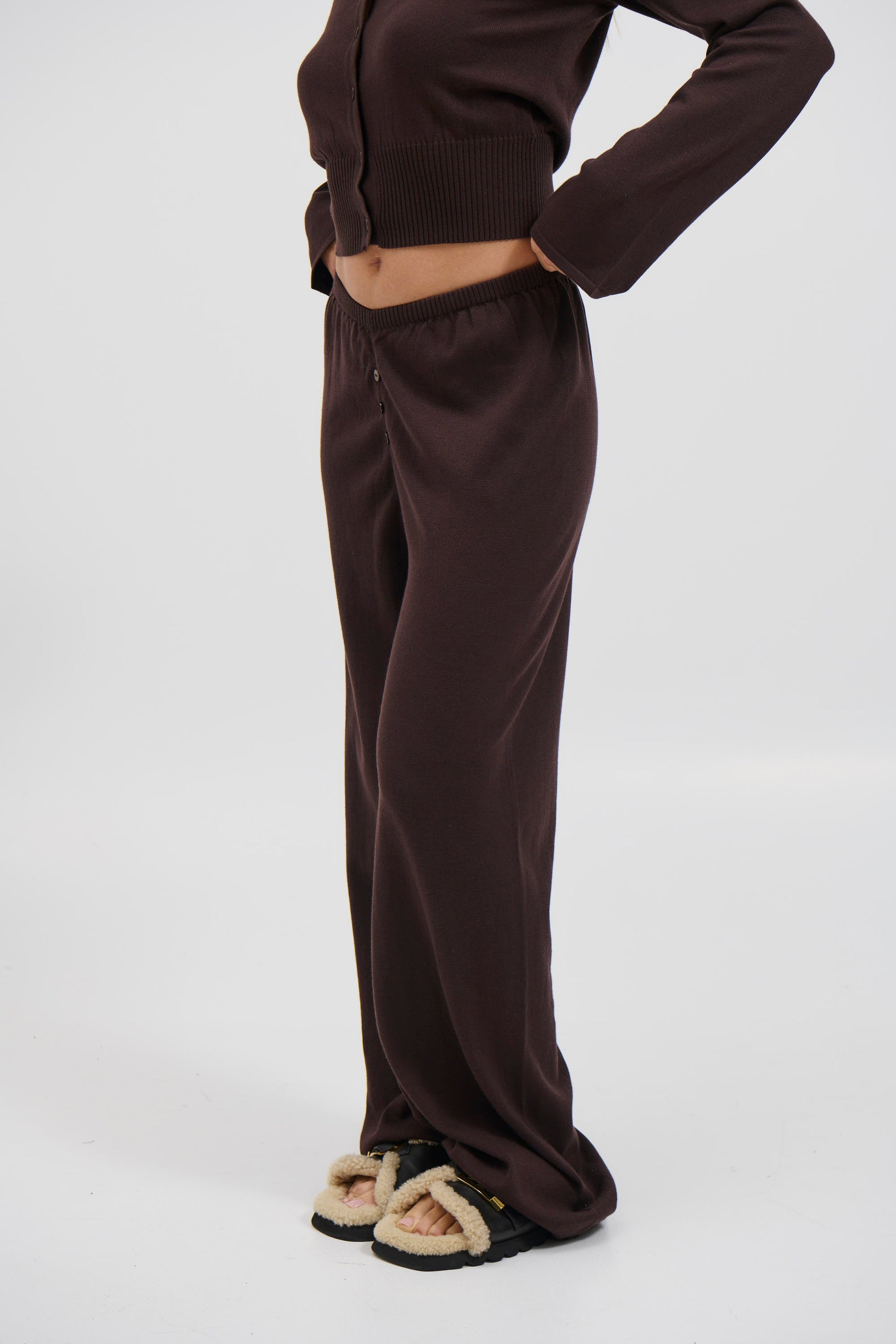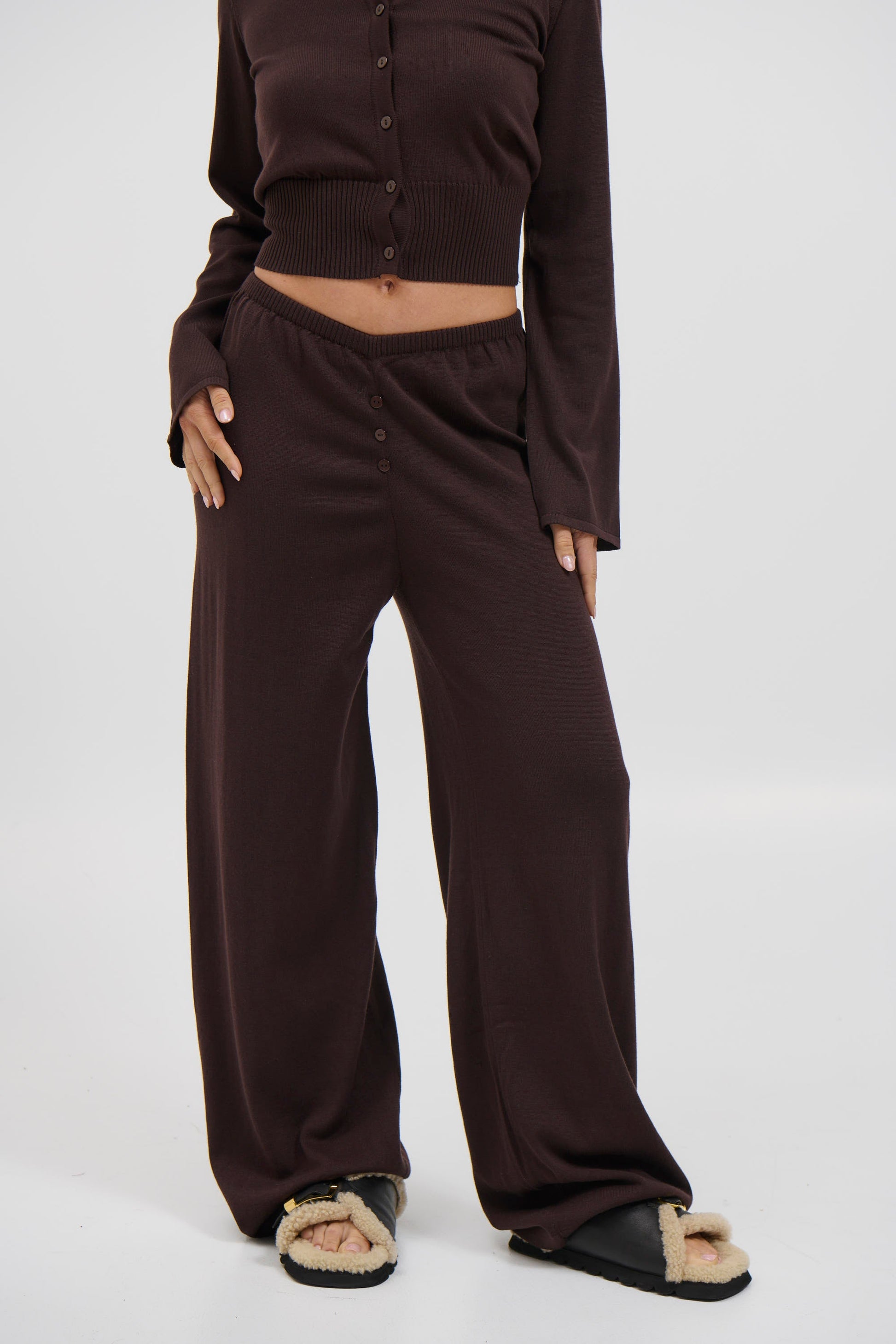 Crafted from a soft, highly stretchable knit fabric, these straight-leg pants offer a relaxed fit with an elasticated waistband for comfort. Featuring a button detail at the center front, they are unlined and opaque. Designed to fit true to size; if you fall between sizes, we recommend choosing the smaller size.