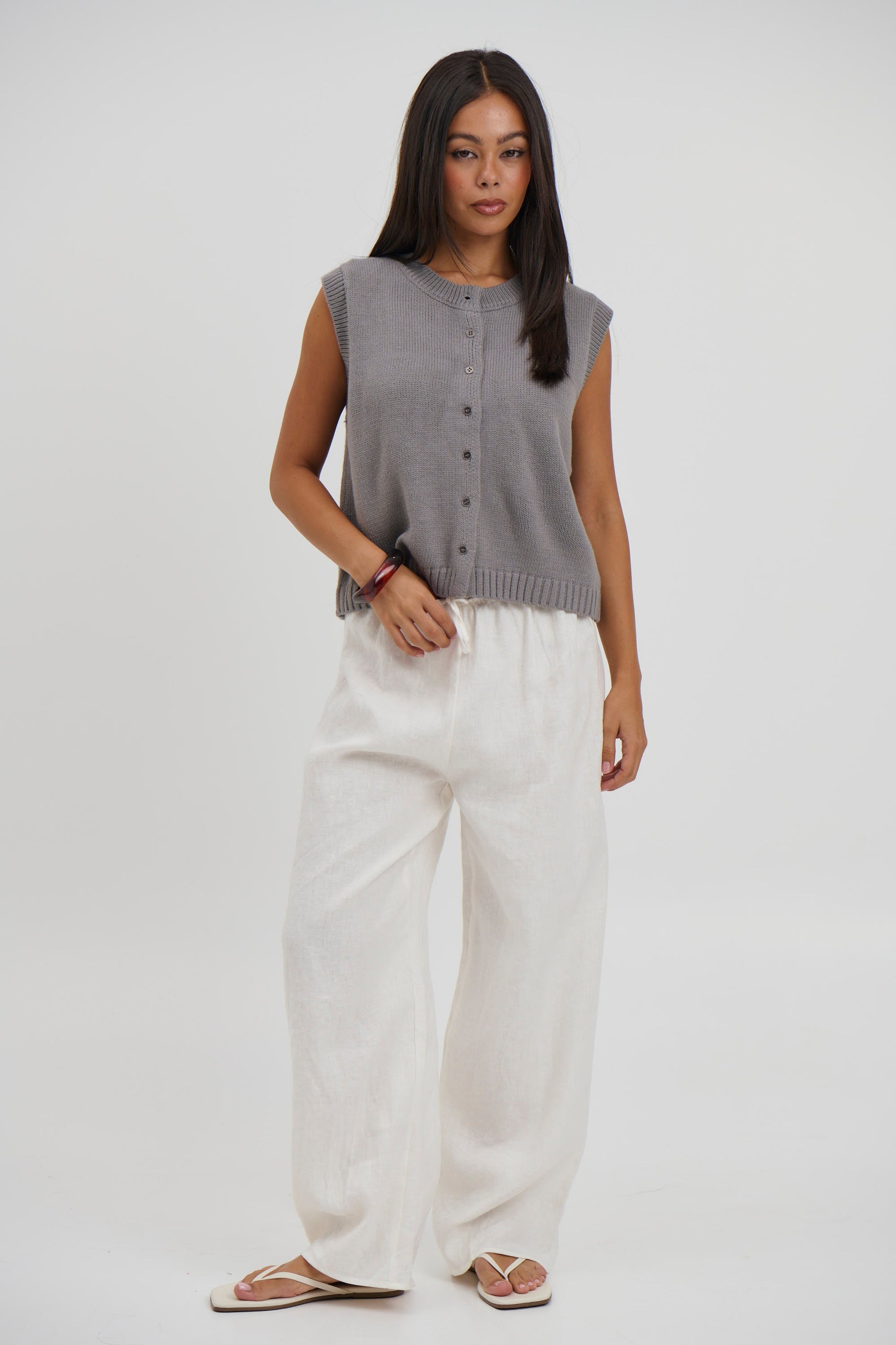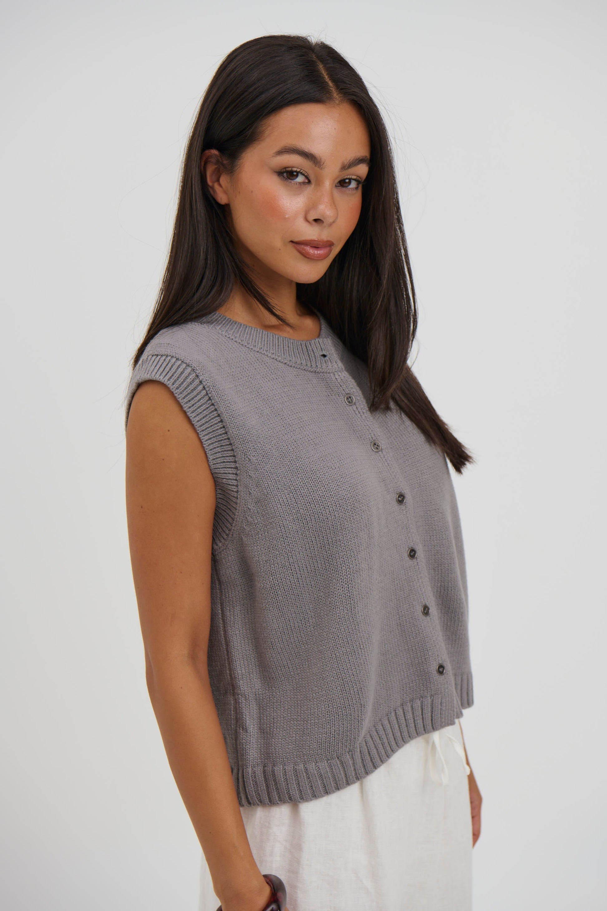 Meet the Cassia Knitted Vest. Featuring a front button closure and a scoop neckline that adds a touch of elegance. It offers a comfortable fit with excellent durability and a soft, luxurious feel. Perfect for layering or wearing on its own.