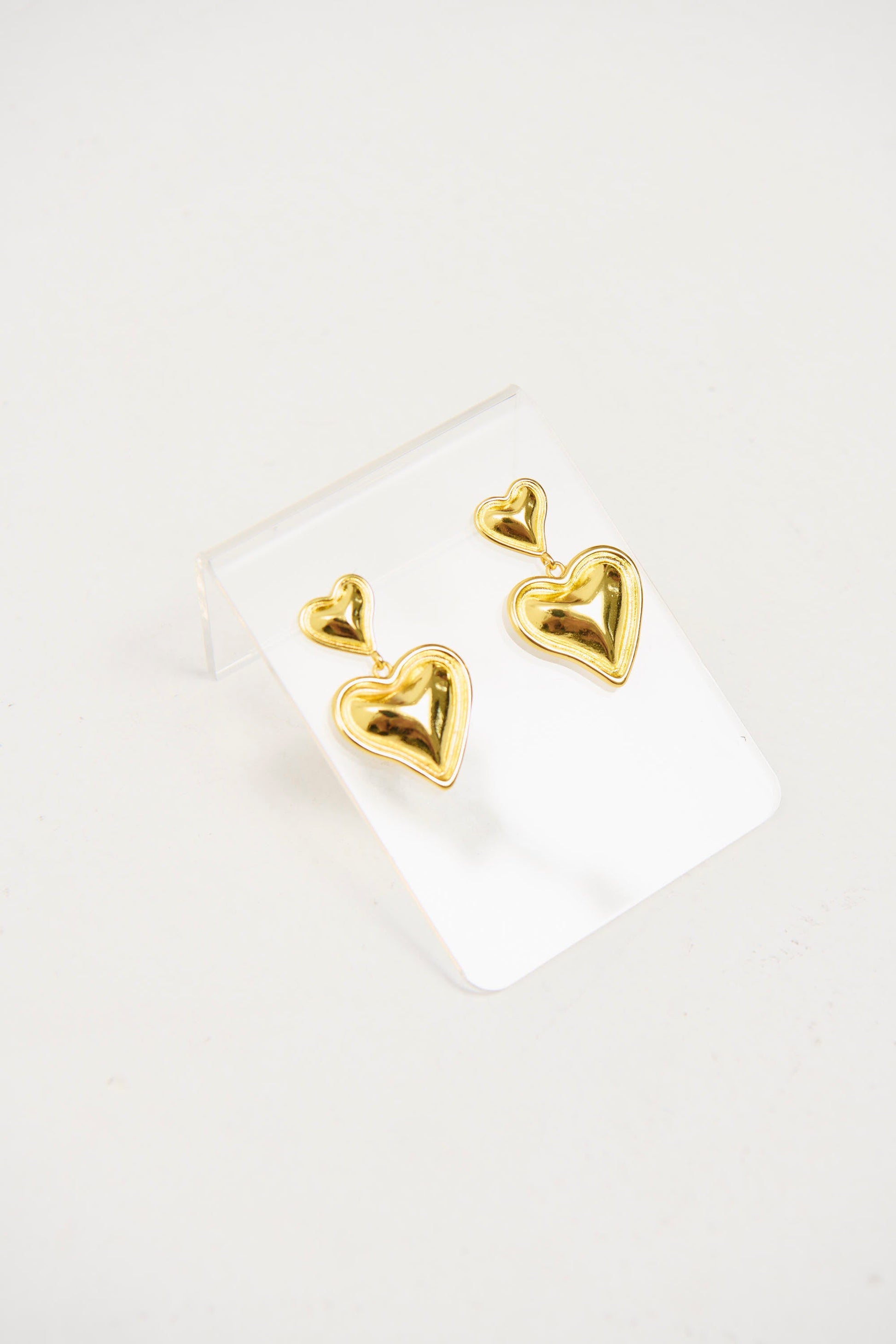 The Double Heart Earring, these earrings are perfect for adding a touch of elegance to any outfit, ideal for everyday wear or special occasions.