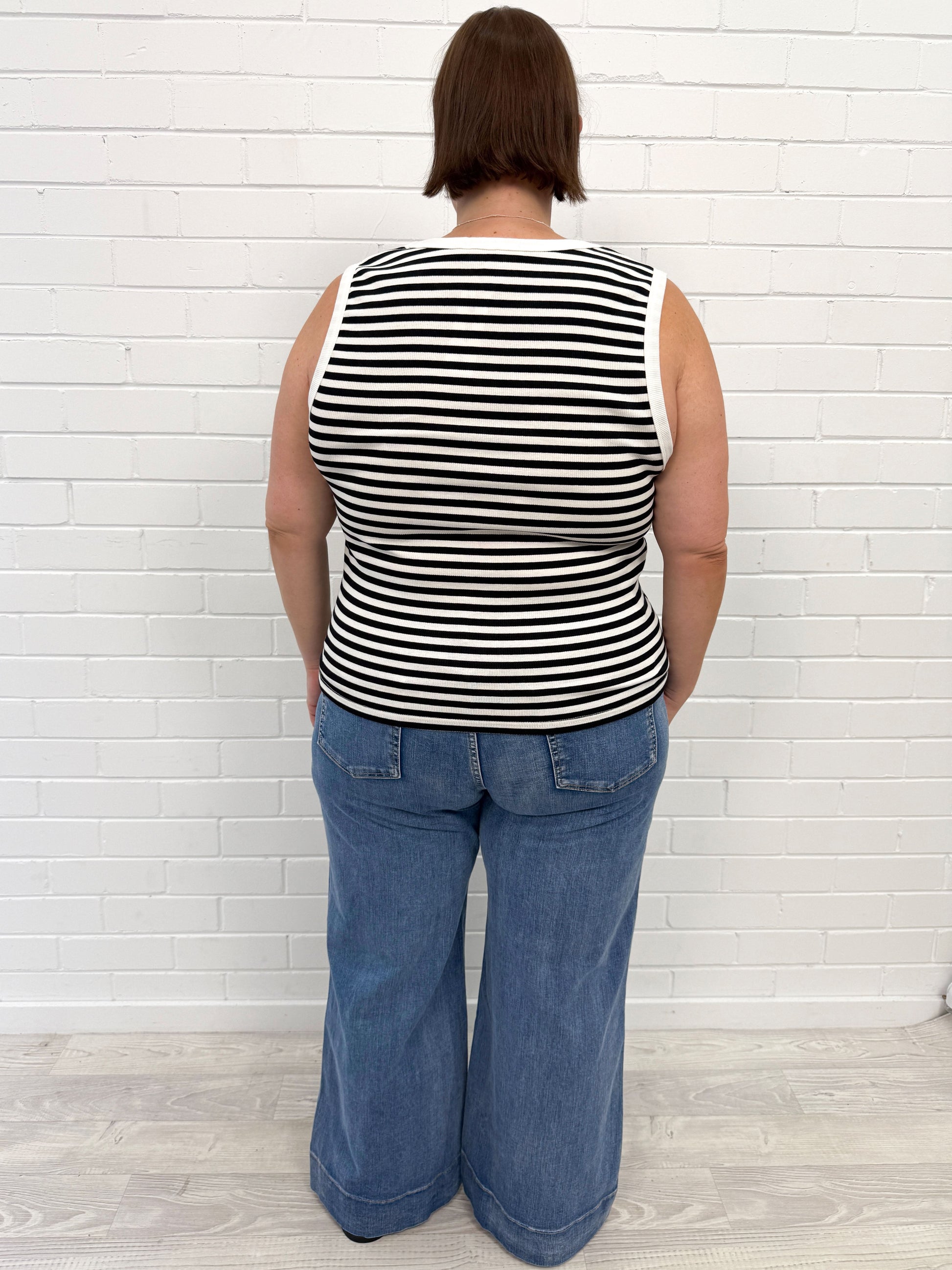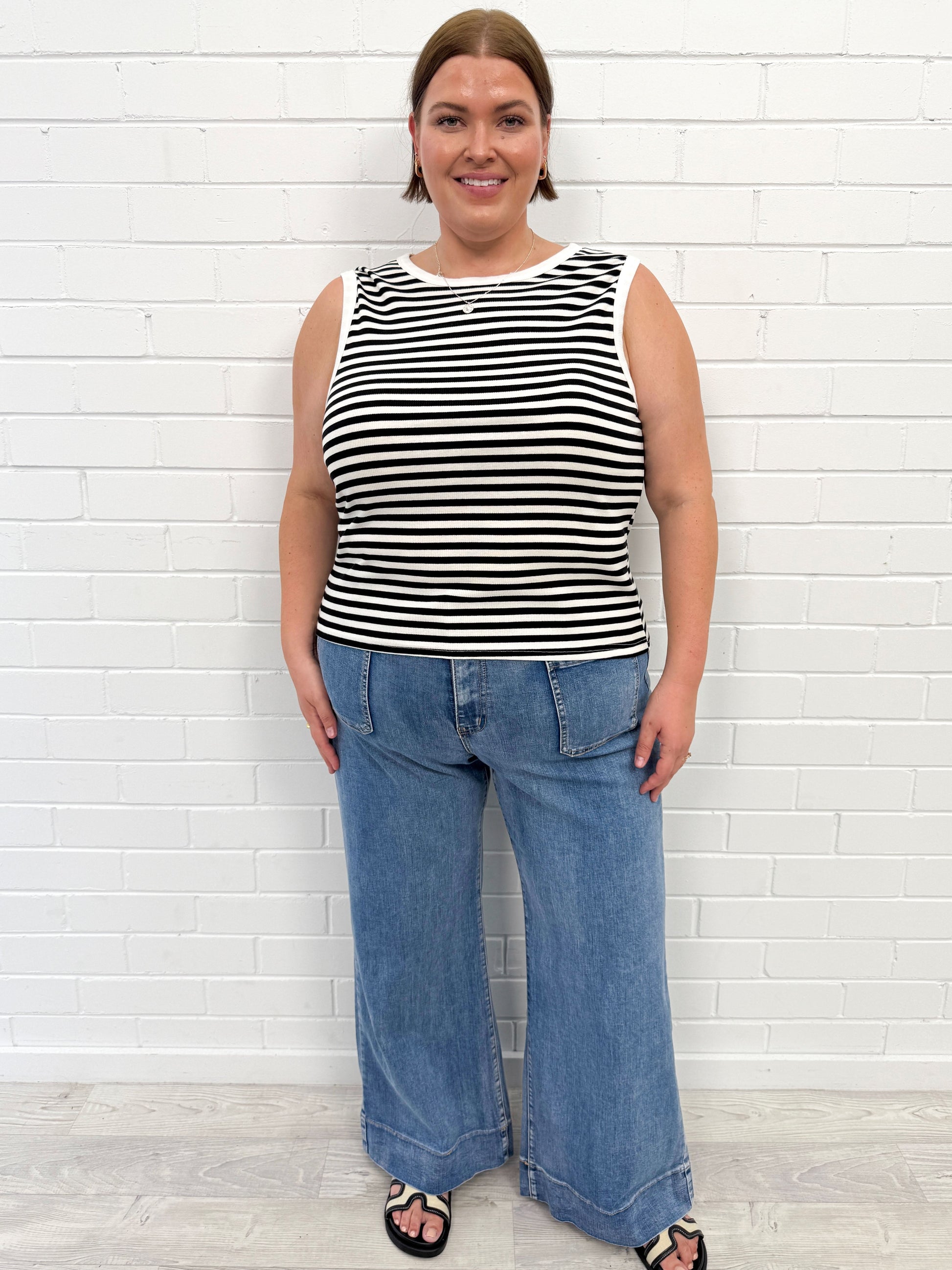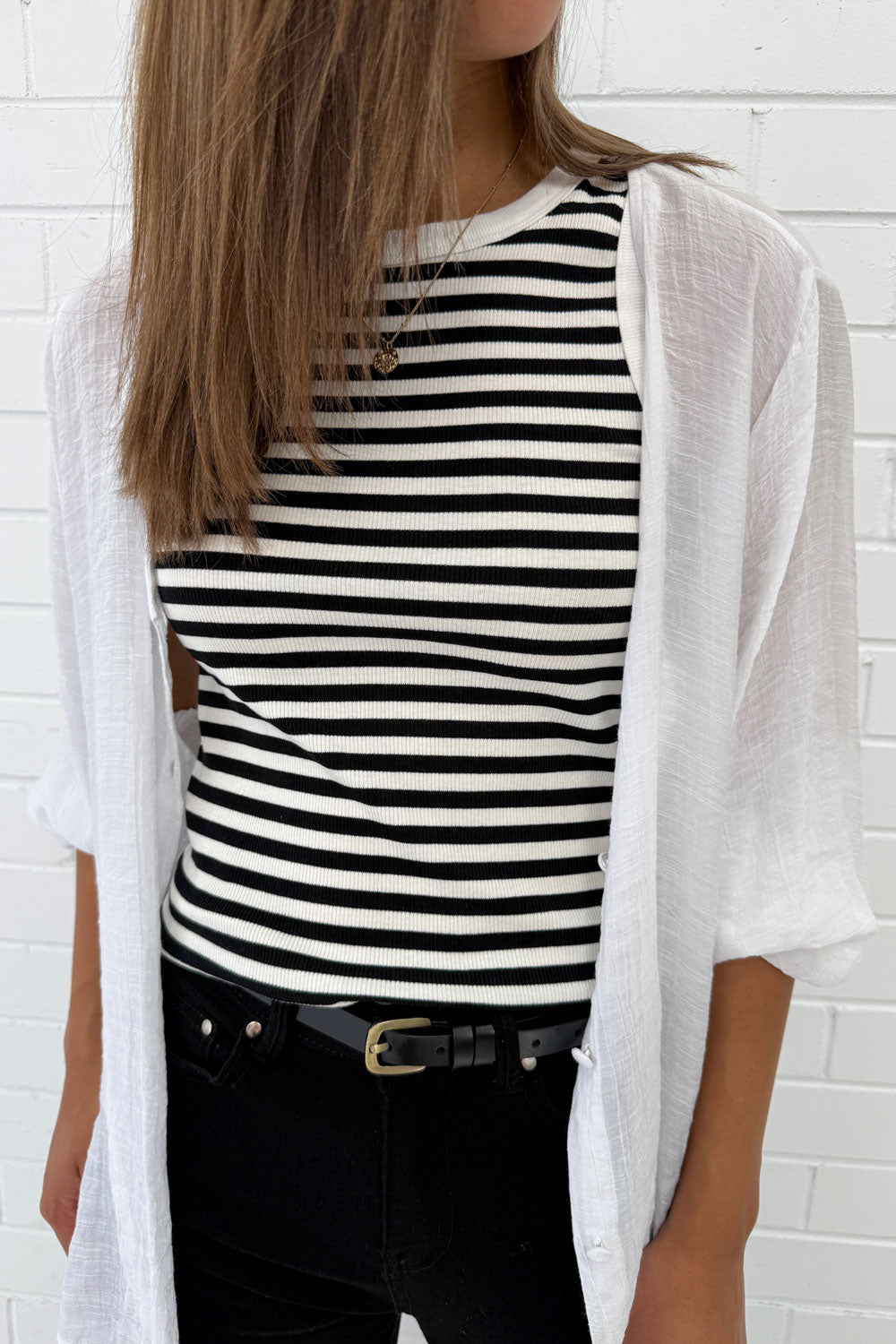 A good, fitted singlet can be hard to find, well for me, anyway. I don’t like being able to see my belly button. The fabric of this is good, the shape is good, and we love the trim around the edges. It’s a good length too.