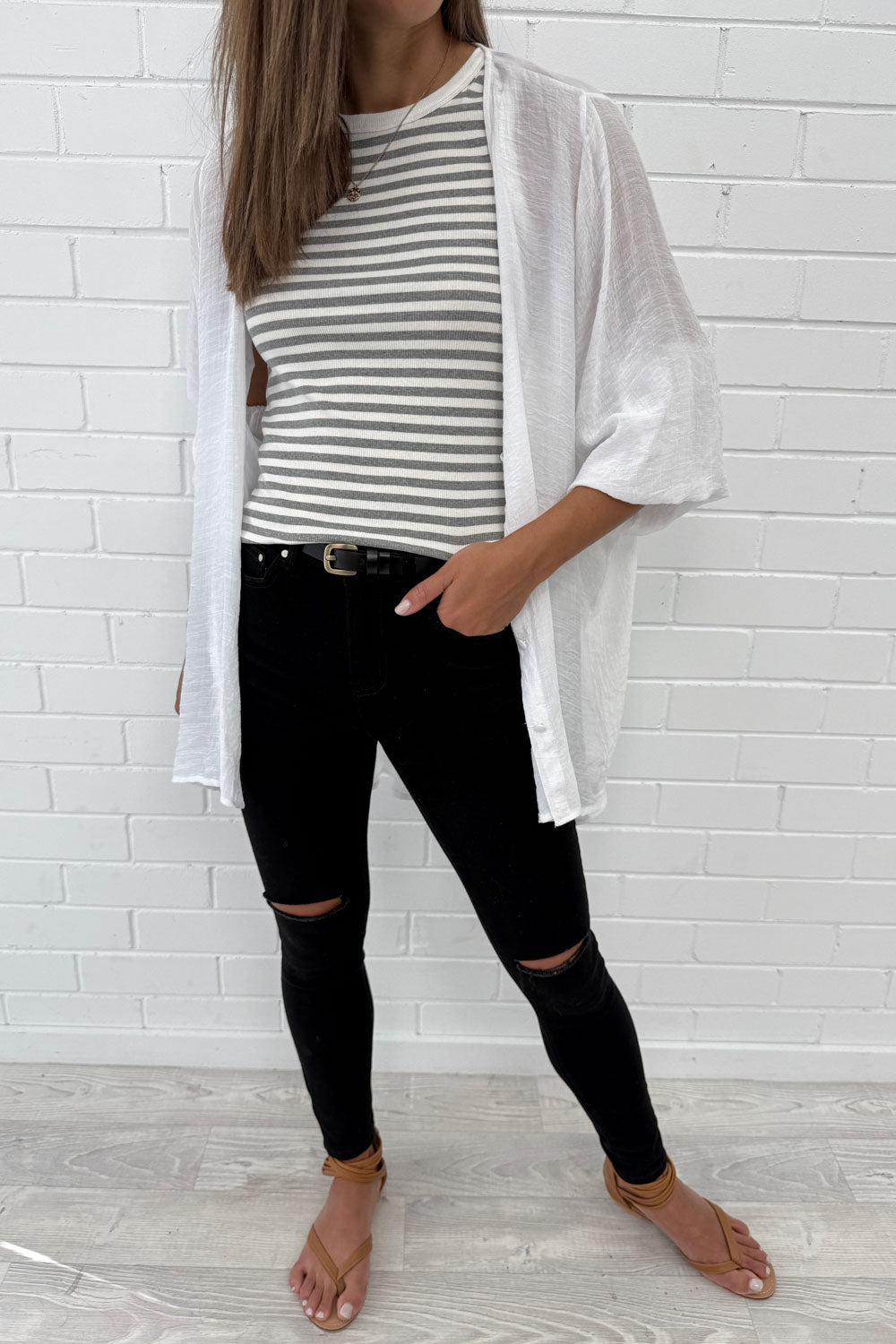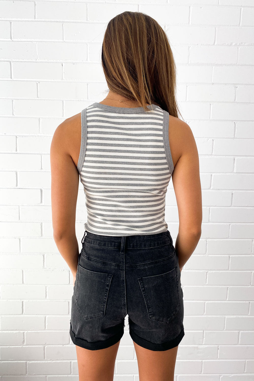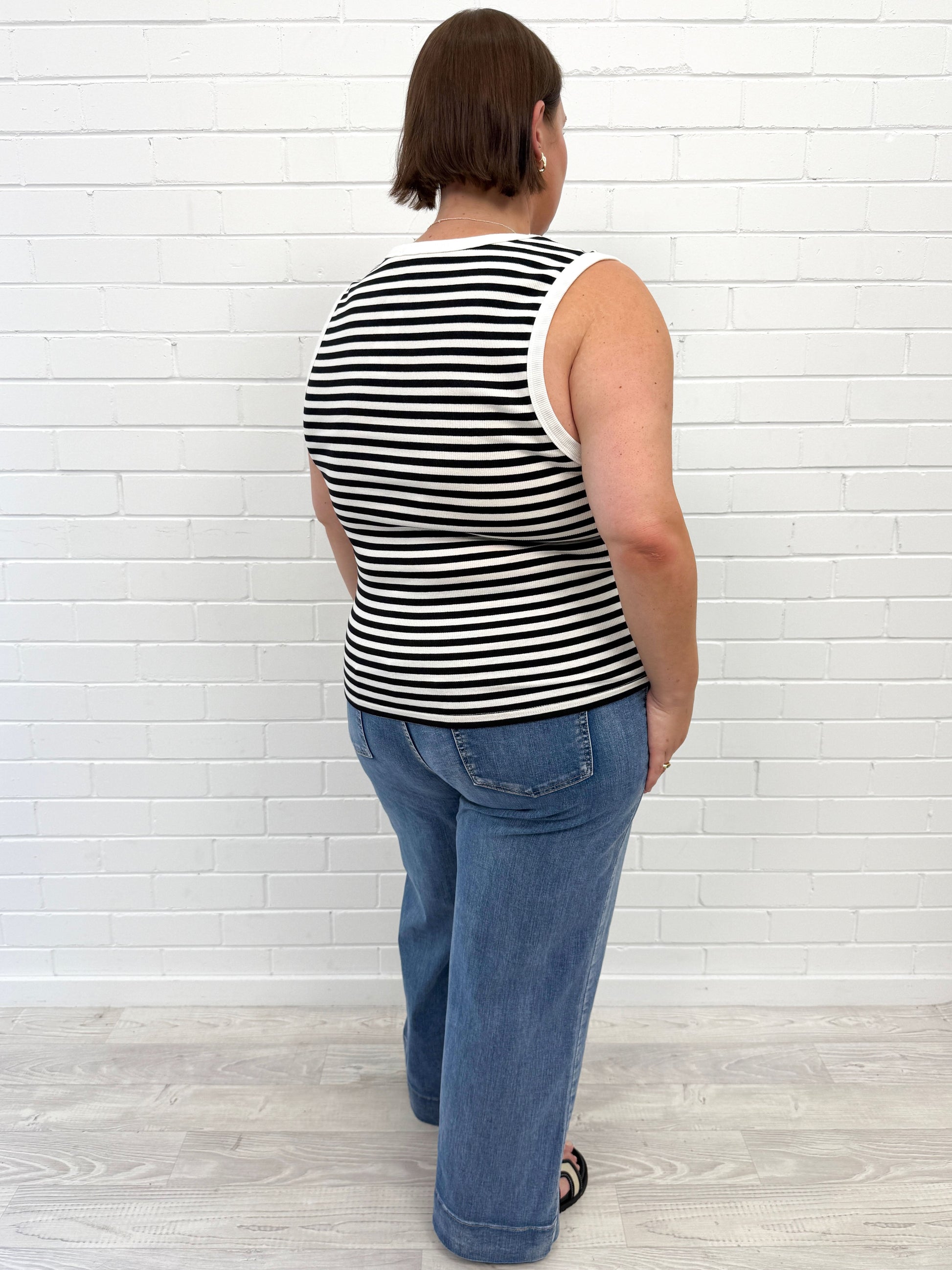 A good, fitted singlet can be hard to find, well for me, anyway. I don’t like being able to see my belly button. The fabric of this is good, the shape is good, and we love the trim around the edges. It’s a good length too.