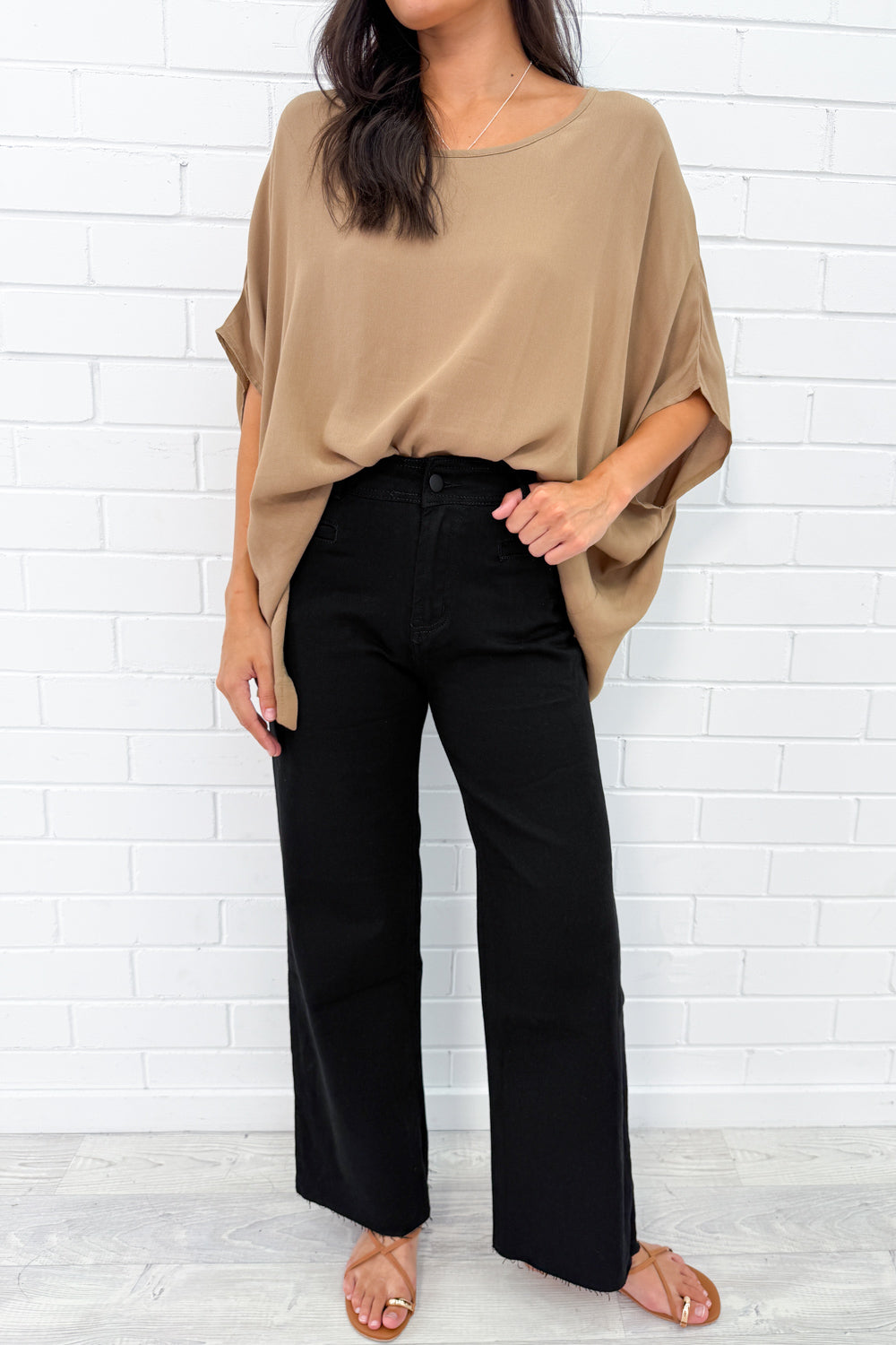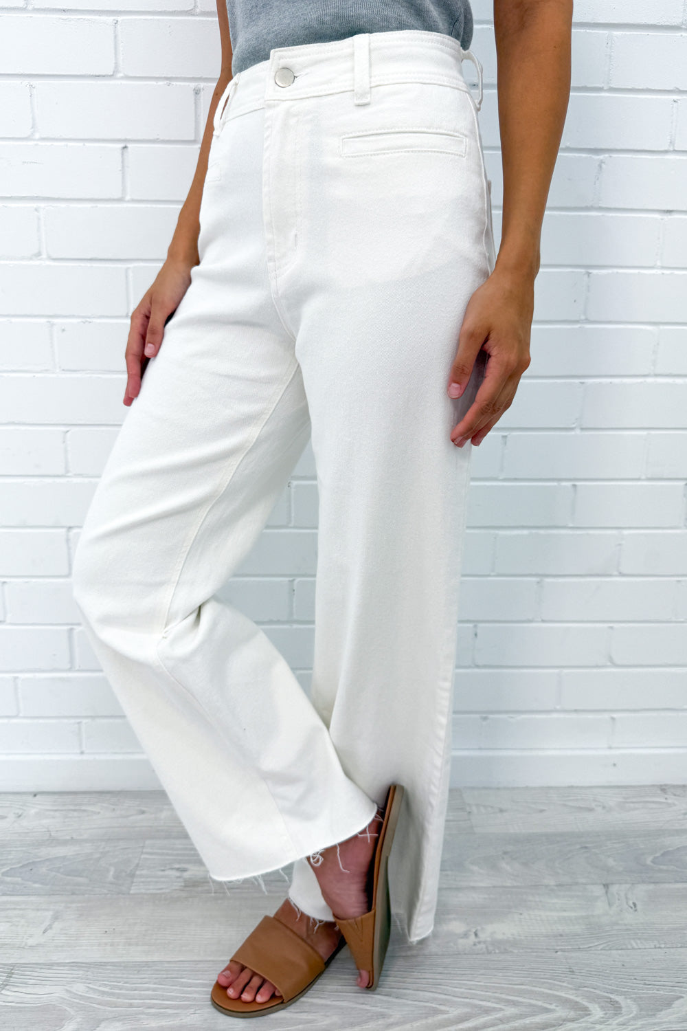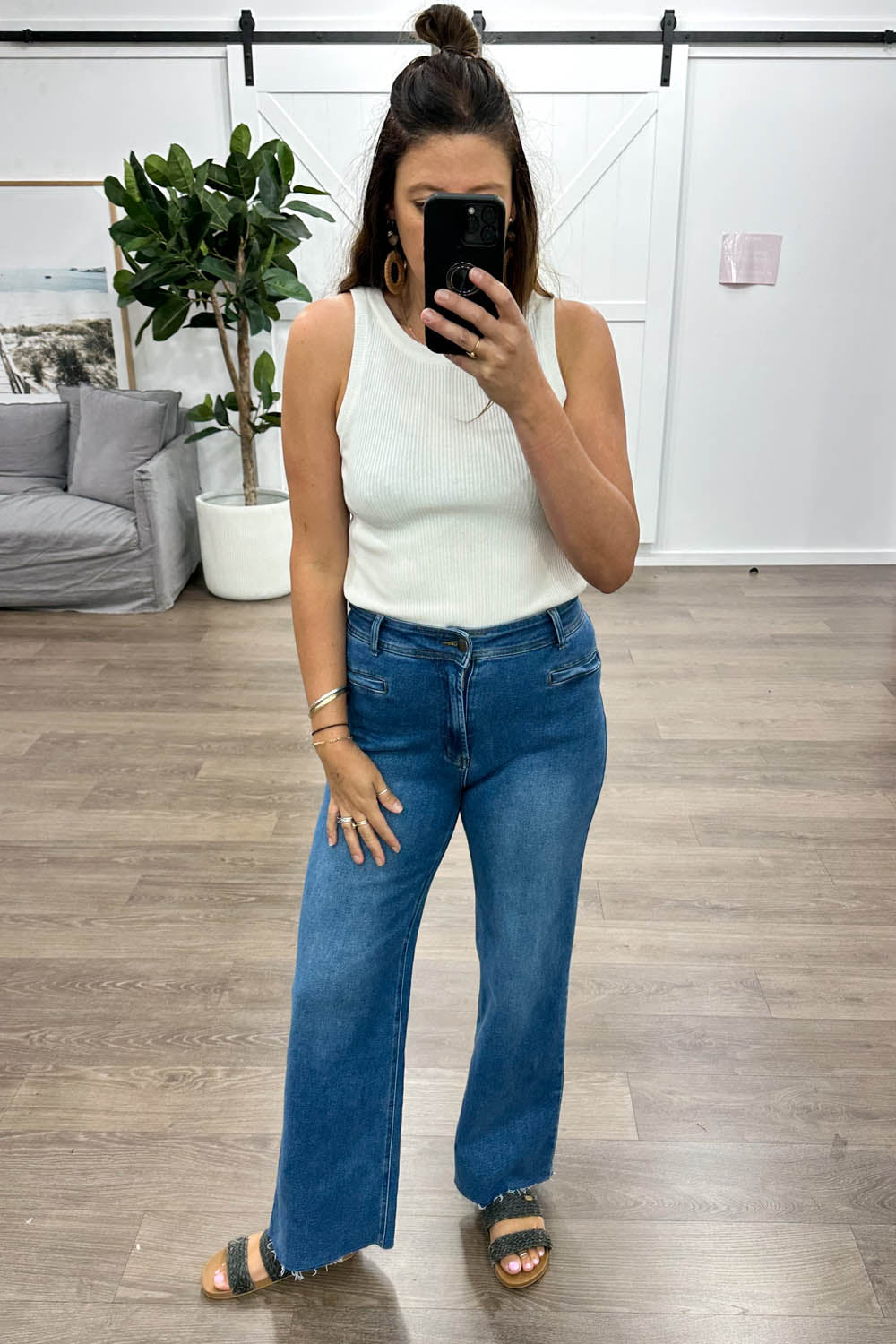 Like our fabulous Ailie Jeans, but with a frayed hem and pockets on the front, as well as pockets at the back. Super stretchy and so freaking comfy, the shape is amazing and they flatter and elongate the legs like you wouldn't believe. The perfect wide leg jeans, which are again a classic which you'll love for seasons and seasons to come.