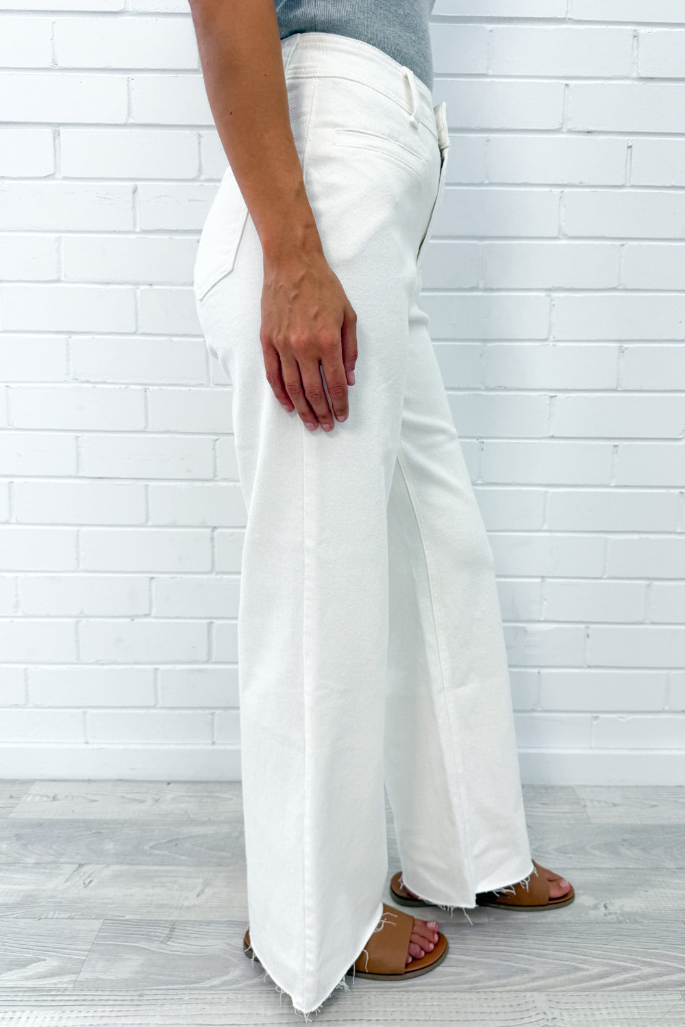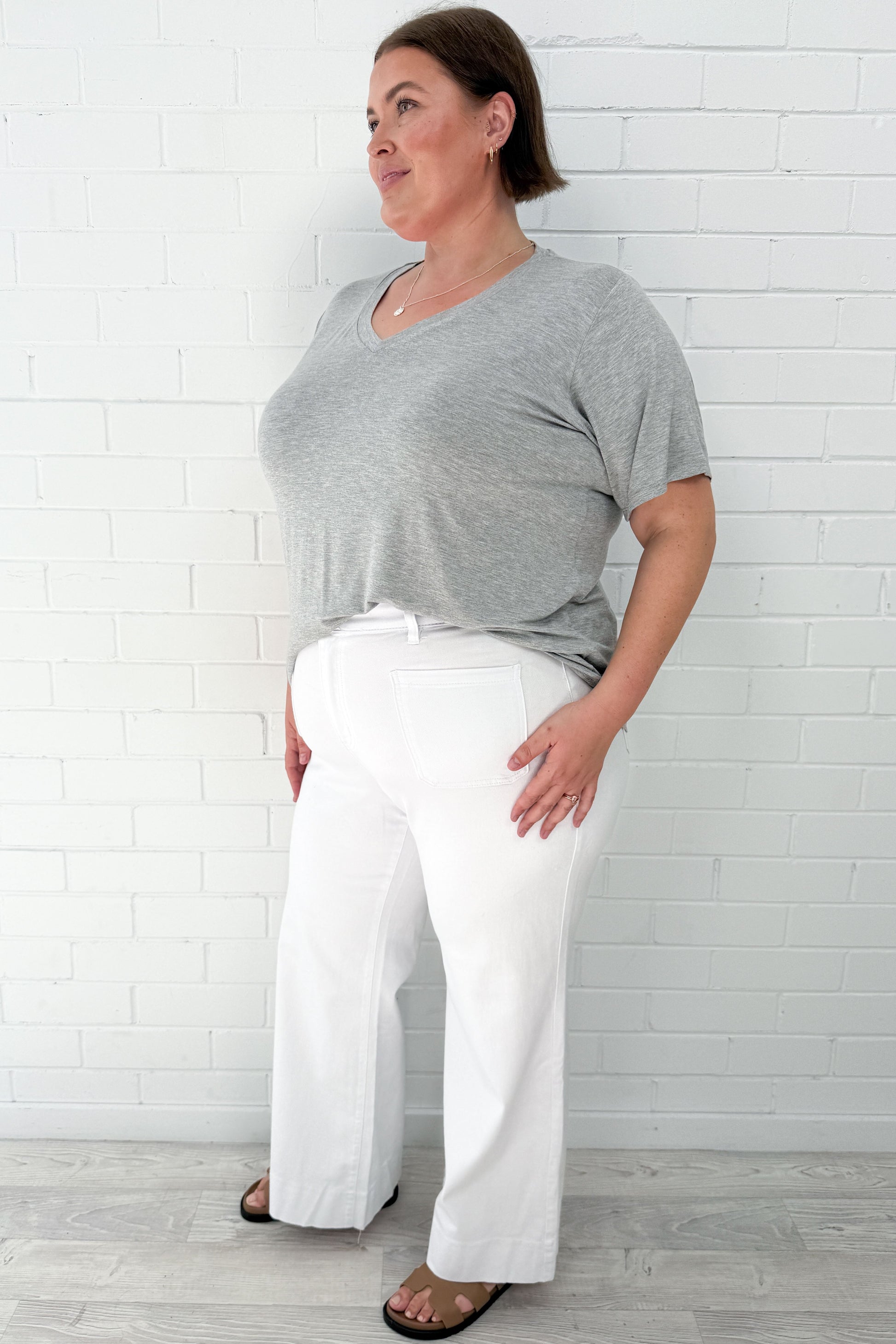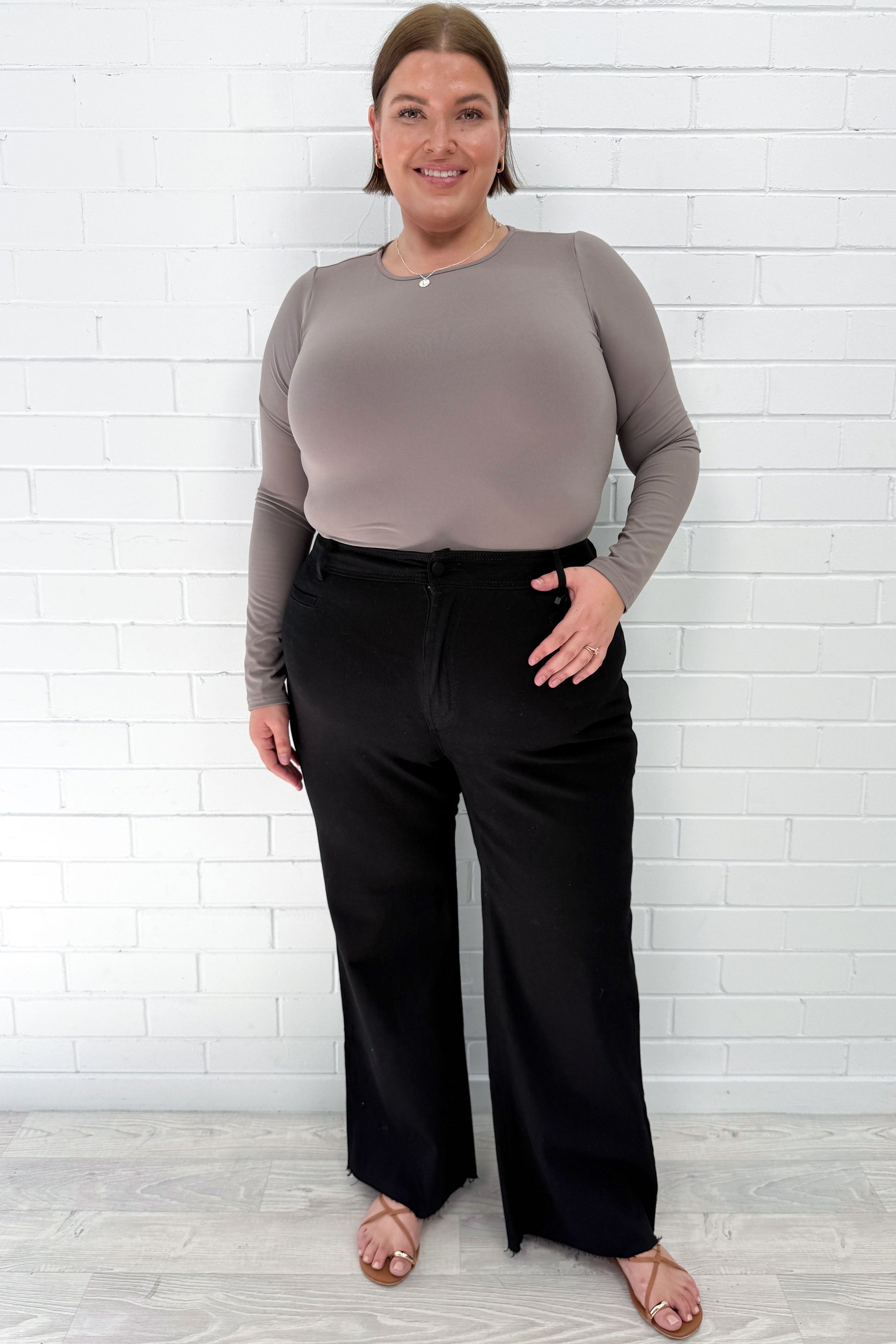Like our fabulous Ailie Jeans, but with a frayed hem and pockets on the front, as well as pockets at the back. Super stretchy and so freaking comfy, the shape is amazing and they flatter and elongate the legs like you wouldn't believe. The perfect wide leg jeans, which are again a classic which you'll love for seasons and seasons to come.