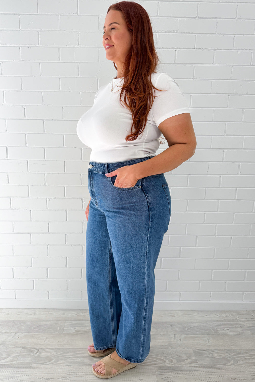 I love these, I just put them on and happily sighed haha. I like the shape, they go around my hips and they are a nice wide leg. They sit above my belly button. I’m a 14 and I would say to size down, I should wear a 12 of these as they are roomy. Unless I want them to be nice and loose, in this case I do, and I’ll belt them if I want them to stay as is. A roomy size and fit, size down if you want them to sit in the one spot, but if you might want to wear them higher or lower, go your normal size. I LOVE THESE.