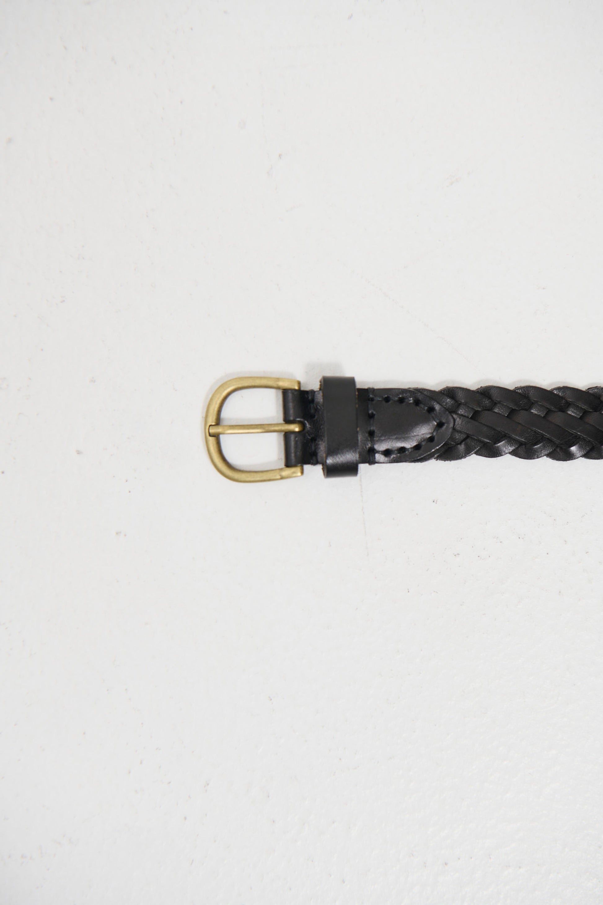 This authentic leather belt features an intricate weave pattern in rich dark brown, complemented by a sophisticated buckle embellishment. The meticulous craftsmanship ensures both durability and refined aesthetics.