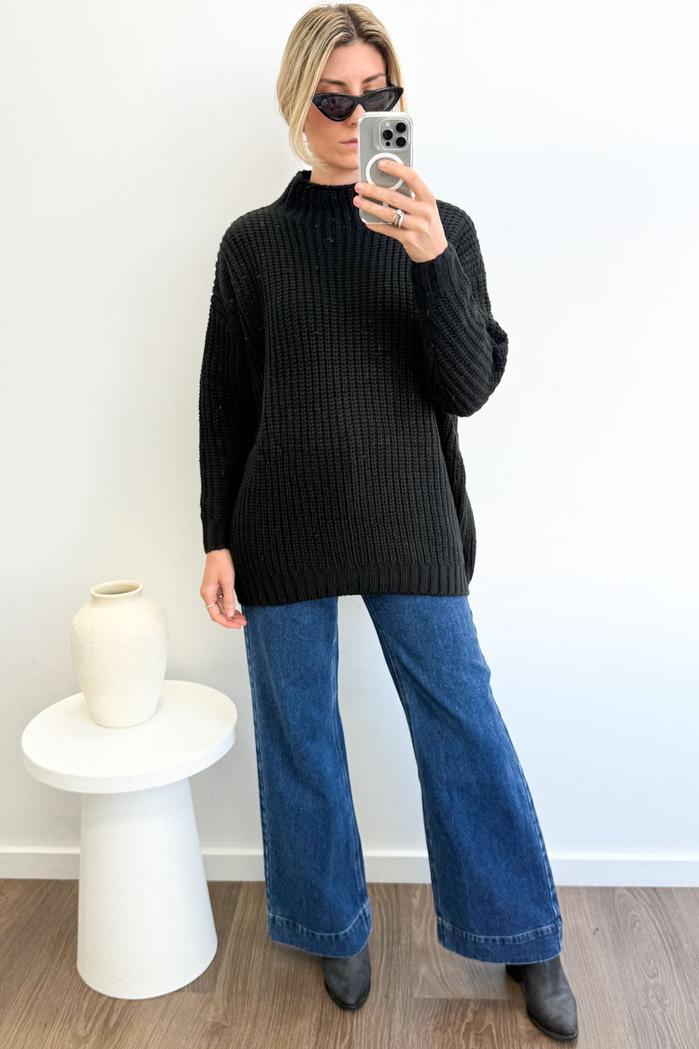 These sit around my belly button, they have the teensiest bit of stretch, and they look and feel good on. A wide leg with a feature hem, functional pockets at the front and back, and they sit on my belly button. Probably one of my absolute faves of the season so far.