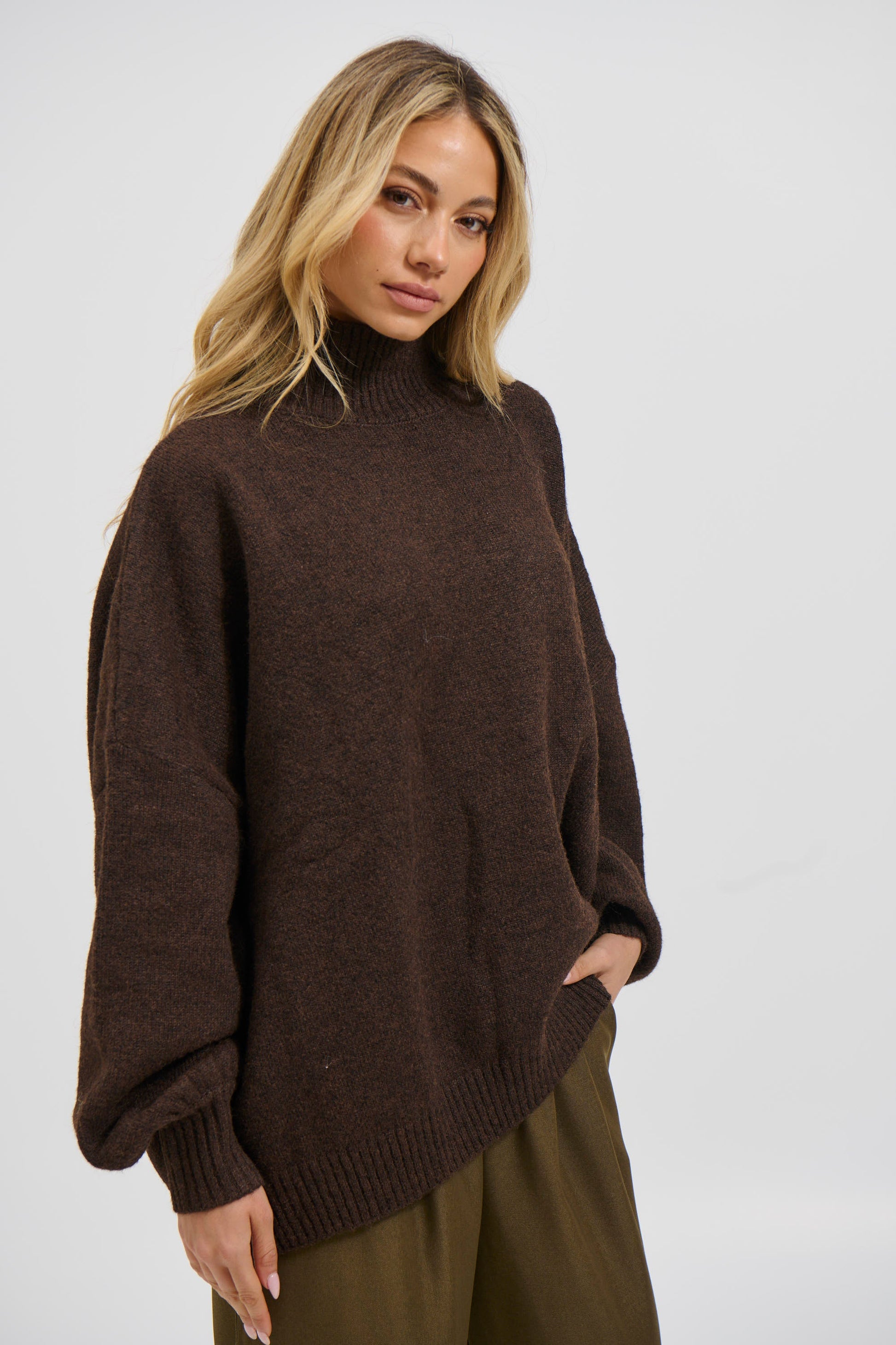 Introducing our Pamela Knit, features an oversized fit for a relaxed, modern silhouette. The classic turtleneck provides warmth and style, while the ribbed hemline and cuffs add subtle texture and structure. Perfect for layering or wearing on its own, this knit is a must-have for a stylish, comfortable look.