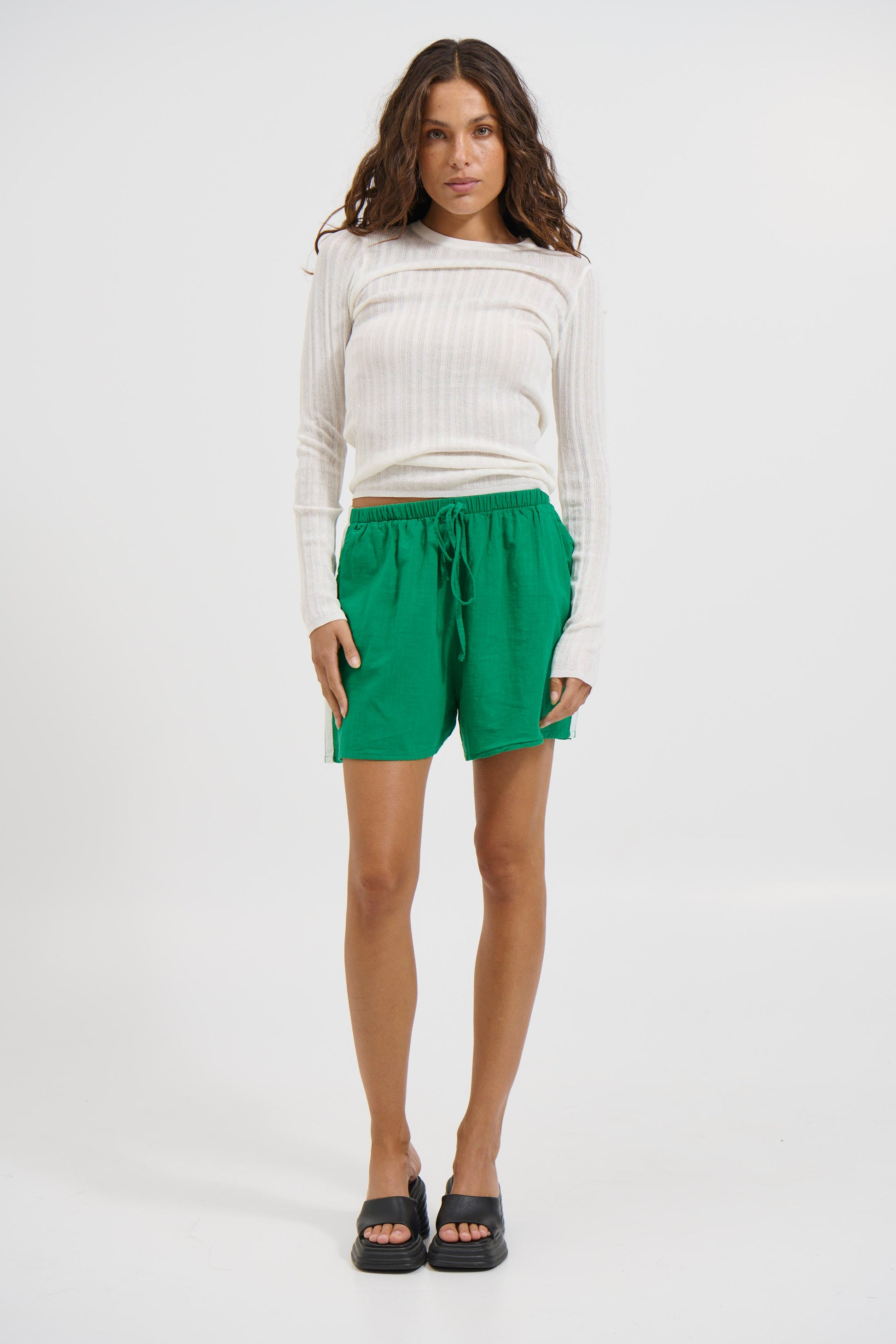 Meet the Ronnie Shorts. The shorts feature an elasticated waistband for a perfect fit and convenient side pockets. Lined and crafted from soft, breathable 100% cotton, offering all-day comfort and a relaxed look.