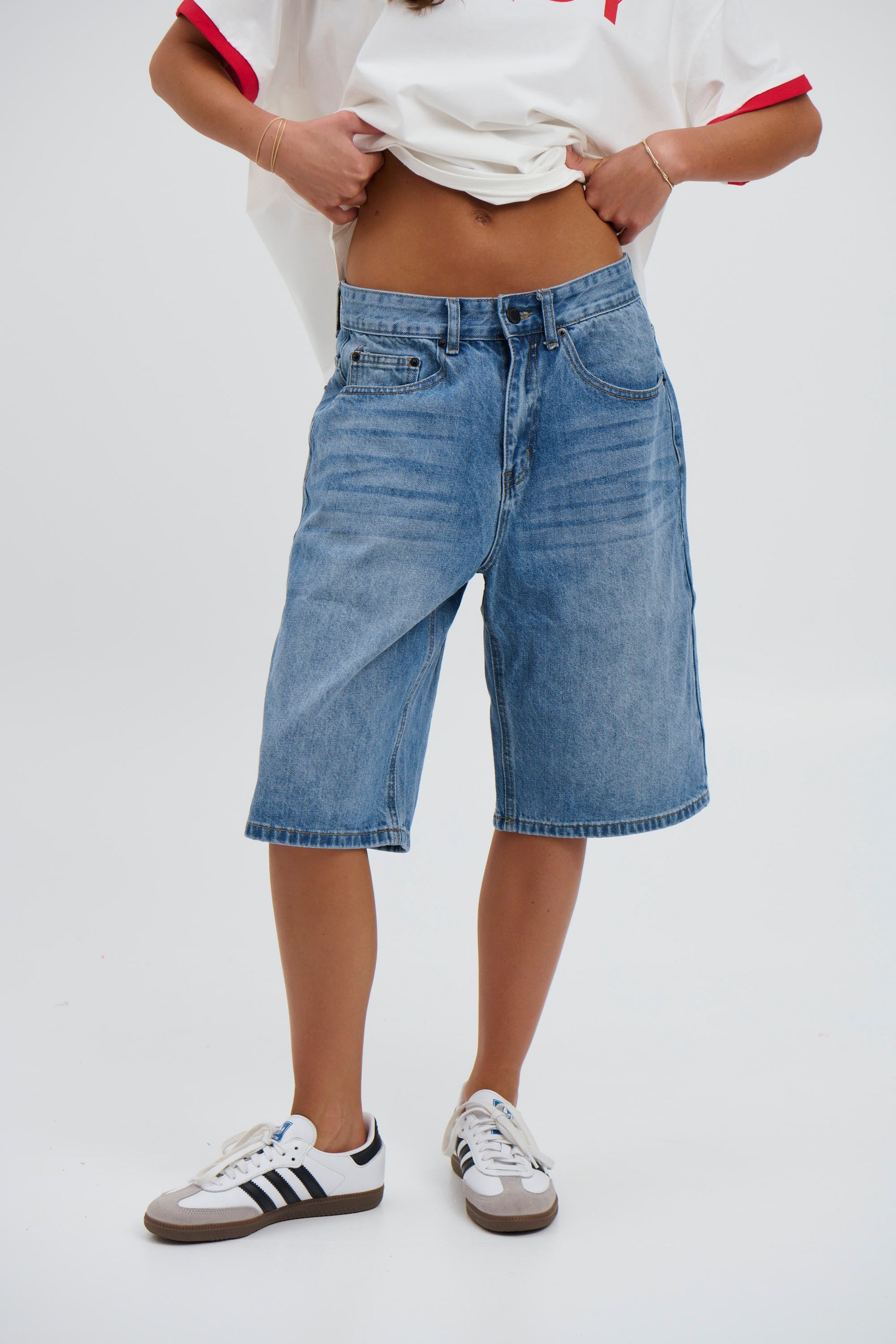 Unisex Flint Baggy Denim Jort Mid Blue