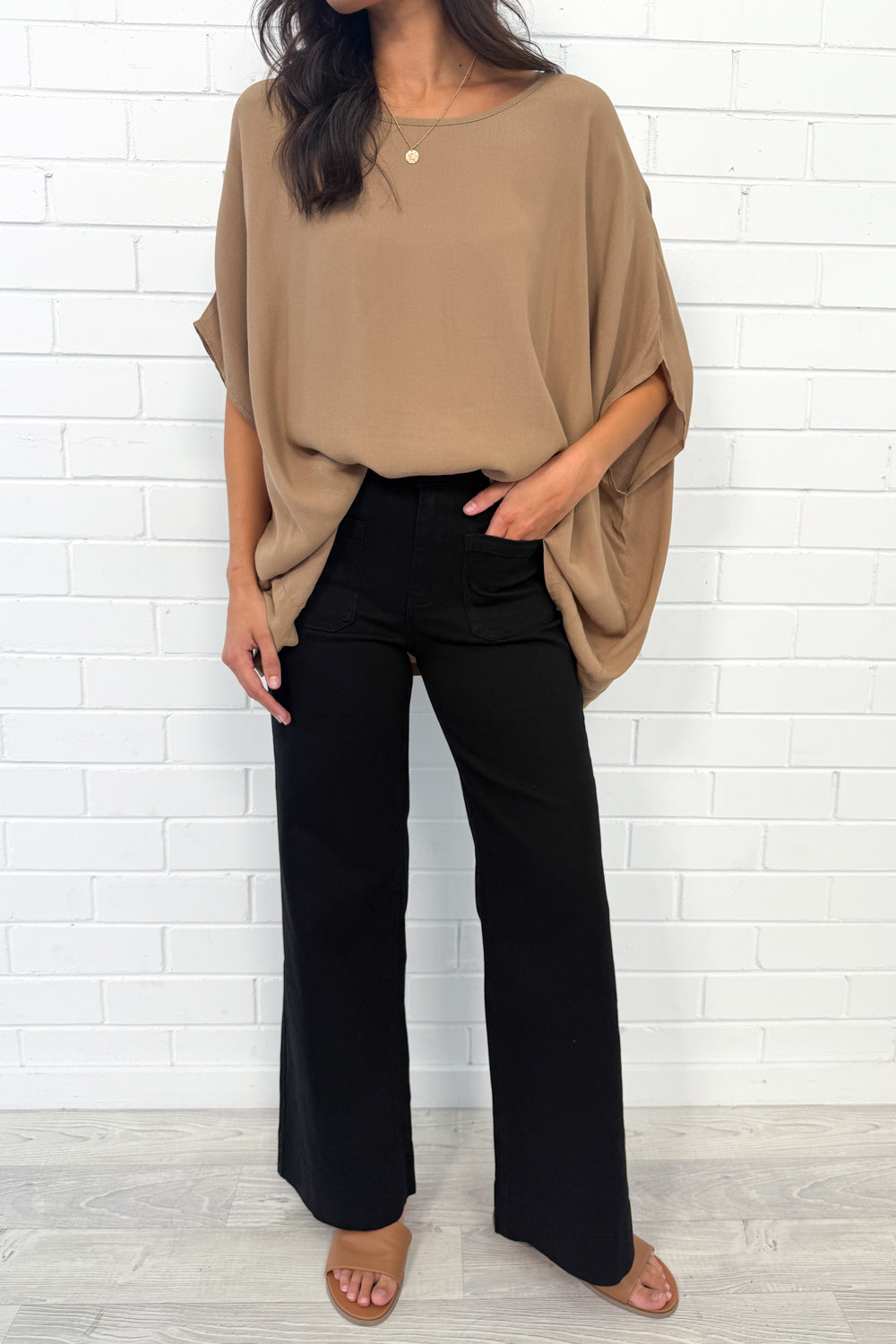 MY GOSH THEY ARE SO NICE. Okay. If they're sitting on your belly button, they'll be full length, whereas you can definitely wear them up higher if you want the shorter look. Really, really stretchy, with the most incredible pockets on the front. They honestly look absolutely phenomenal on all shapes and sizes - legs look long, bums look good, they are unreal. The hem around the bottom is such a striking feature, and they feel sensational on.